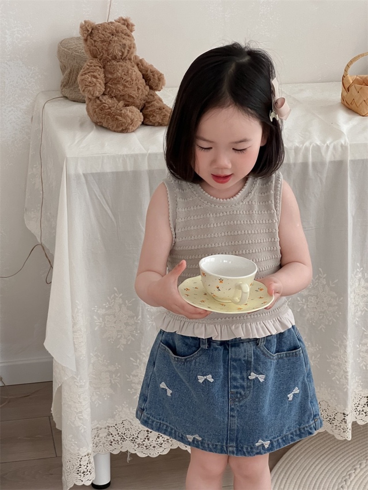 子供服 こどもふく おしゃれ お揃い オソロ リンク リンクコーデ 姉妹 姉妹コーデ かわいい プチプラ 女の子 韓国子供服 韓国服 リボン デニム パンツ スカート