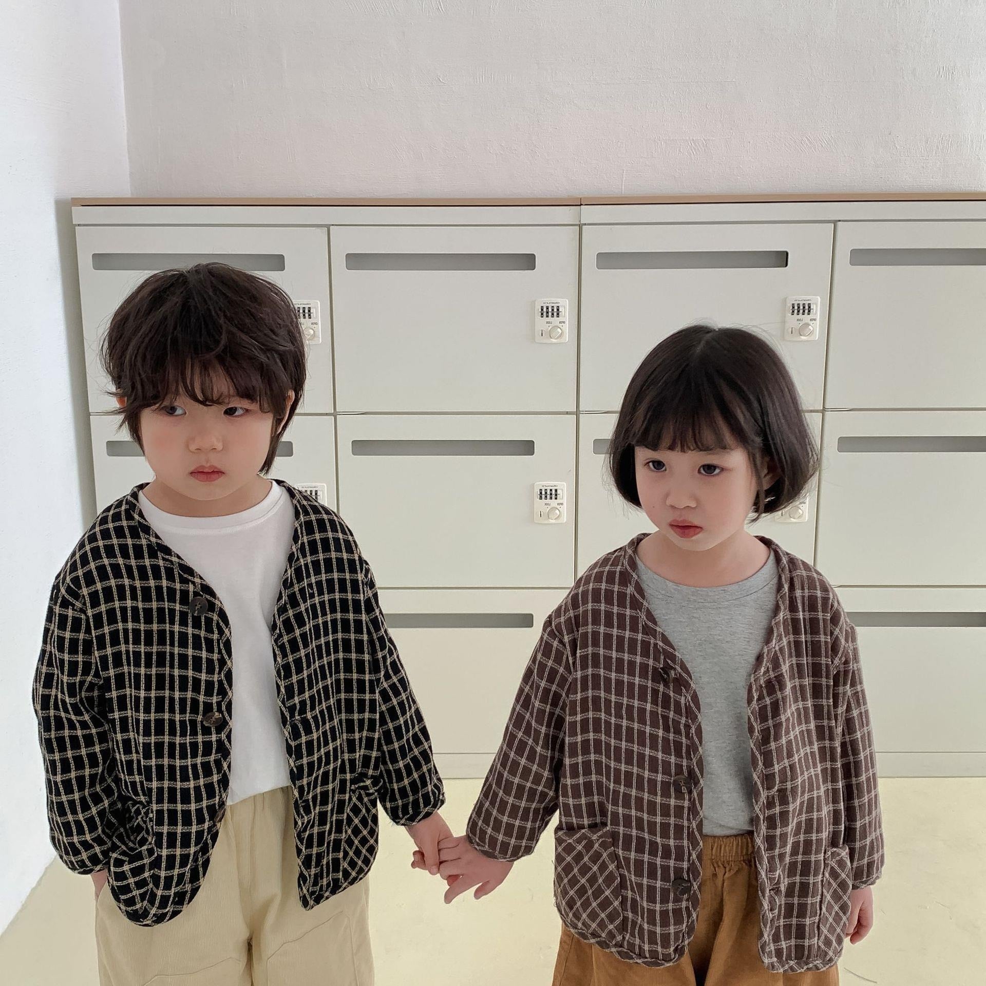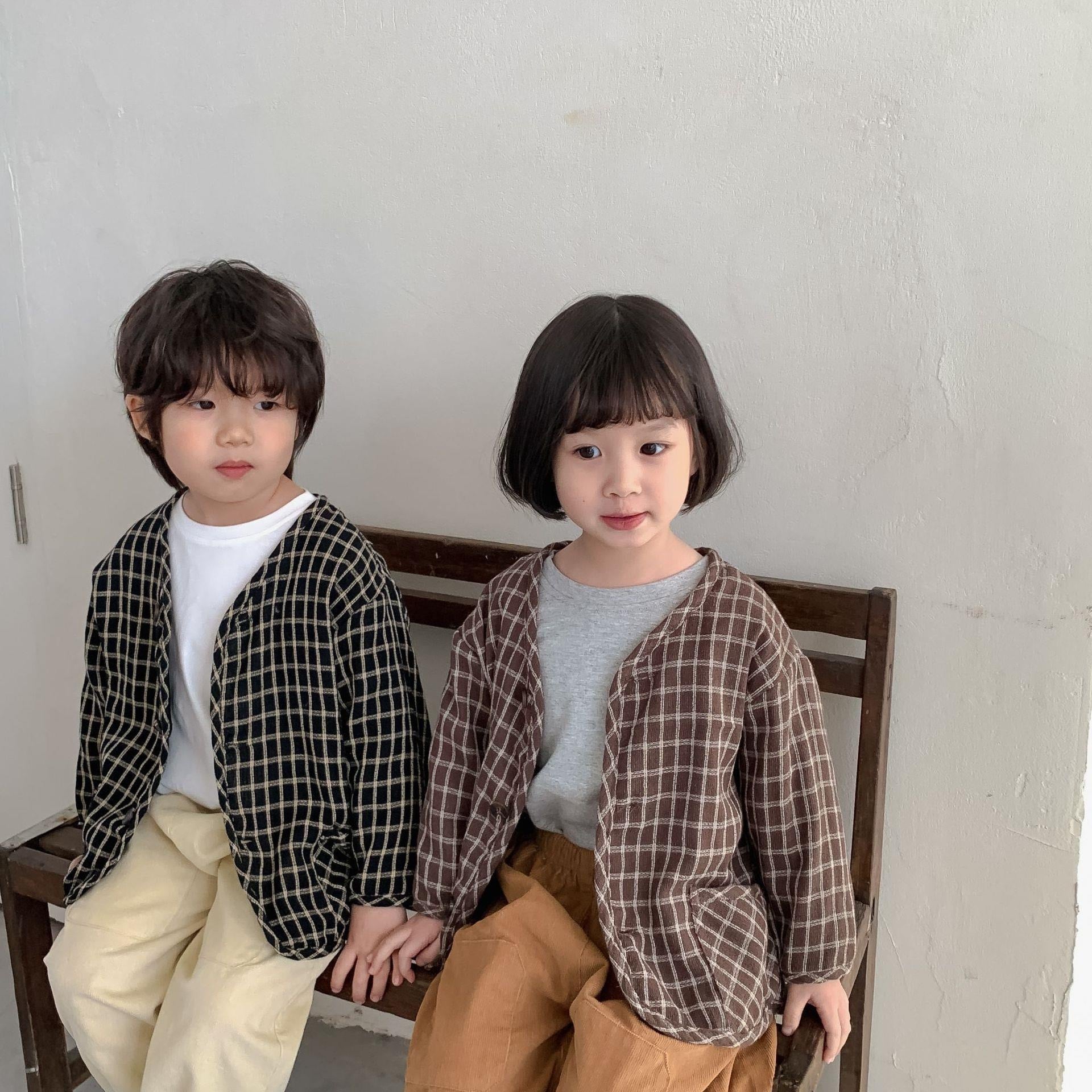 子供服 こどもふく おしゃれ お揃い オソロ リンク リンクコーデ 姉妹 姉妹コーデ かわいい プチプラ 女の子 男の子 チェック アウター ブラウン ブラック 黒