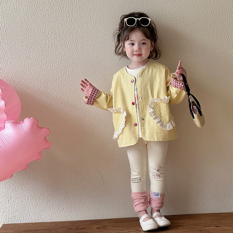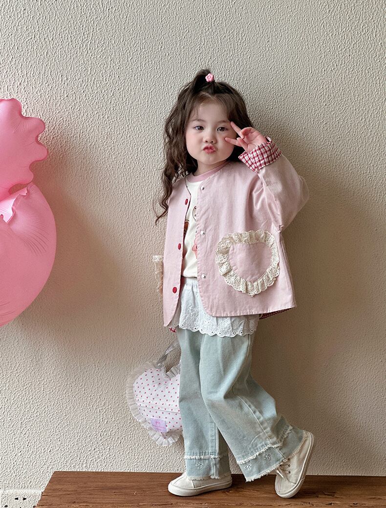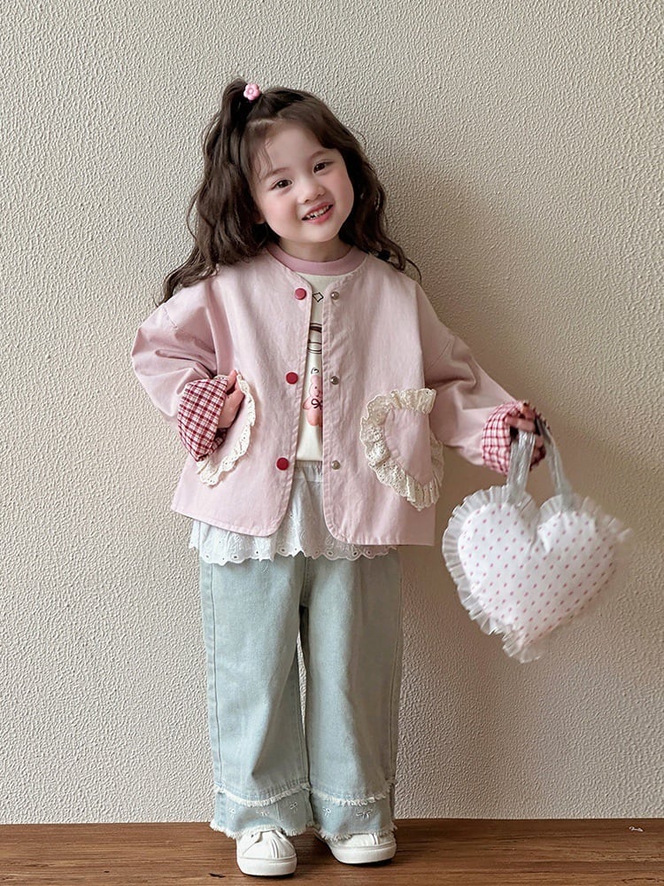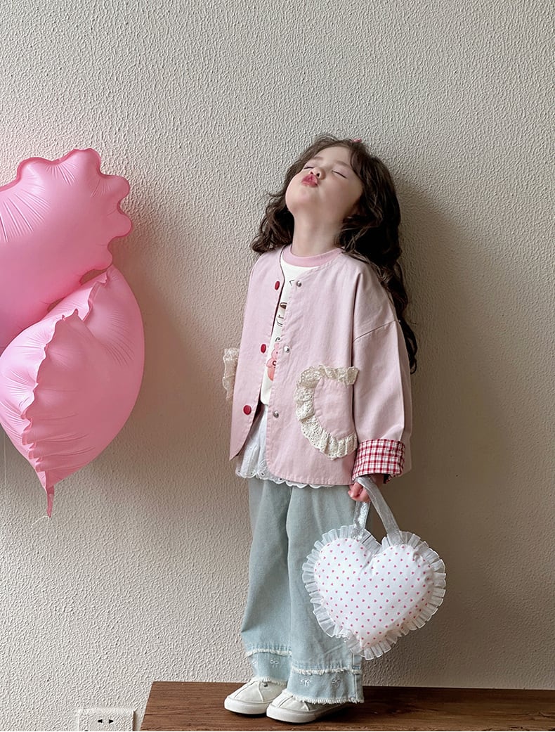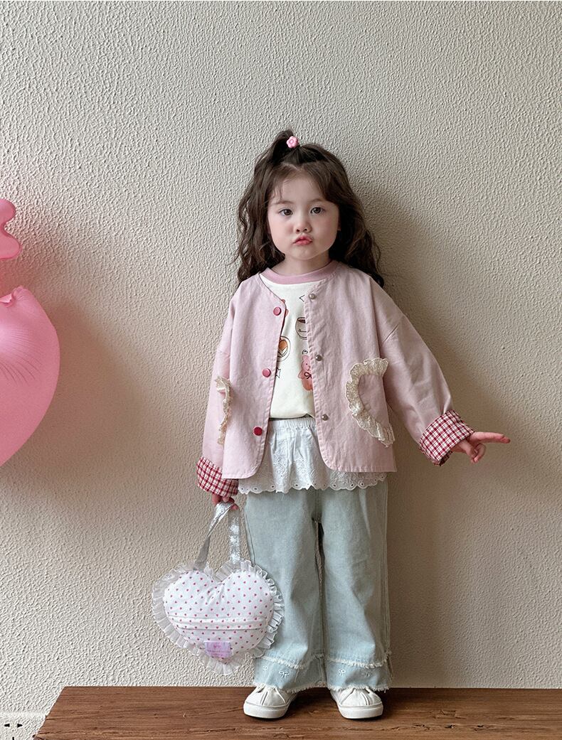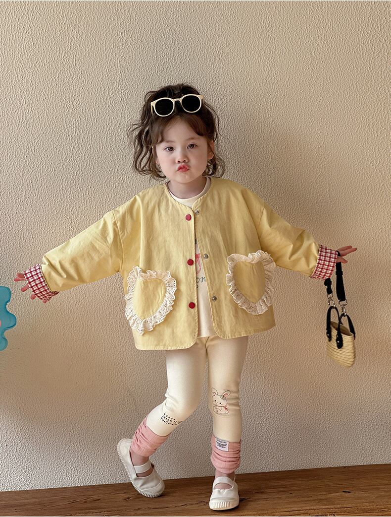 子供服 こどもふく おしゃれ お揃い オソロ リンク リンクコーデ 姉妹 姉妹コーデ かわいい プチプラ 女の子 ピンク イエロー ジャケット アウター ハート ハートポケット チェック