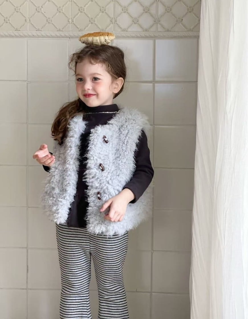 韓国子供服 こどもふく 女の子 おしゃれ かわいい 秋冬 冬服 ベスト もこもこ 色違い