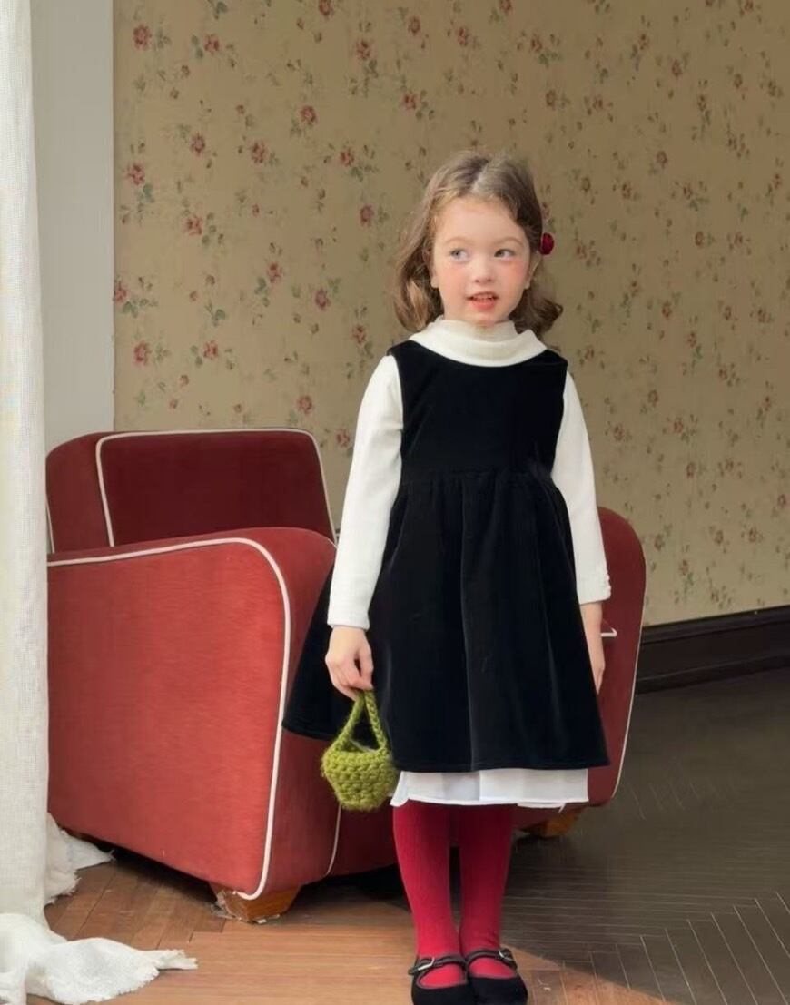 韓国子供服 こどもふく 女の子 おしゃれ かわいい 秋冬 冬服 お出かけ ベロア ワンピース