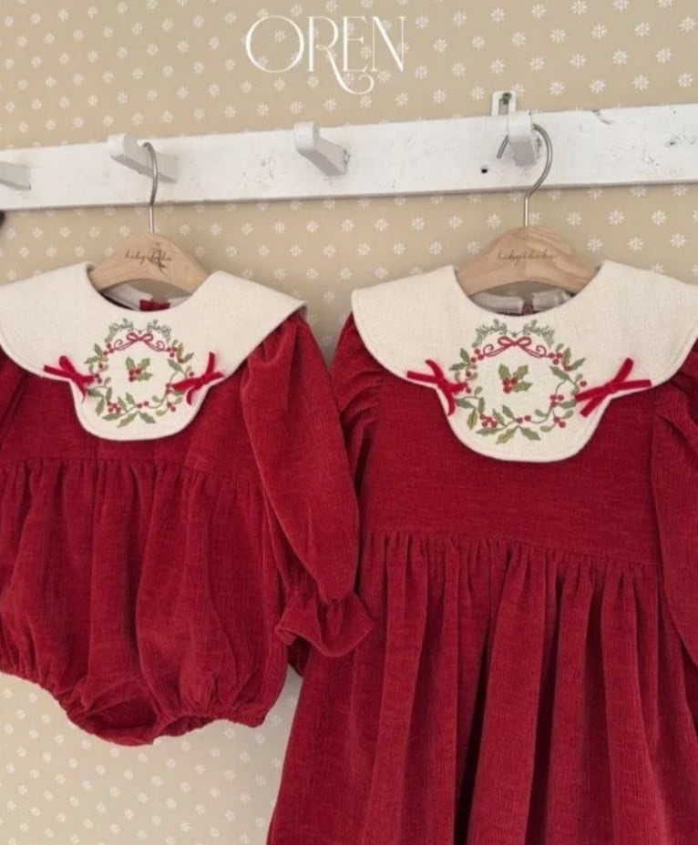 オーレン OLEN 韓国子供服 韓国ブランド 可愛い おしゃれ 姉妹 女の子 おんなのこ ワンピ ワンピース クリスマス クリスマスカラー