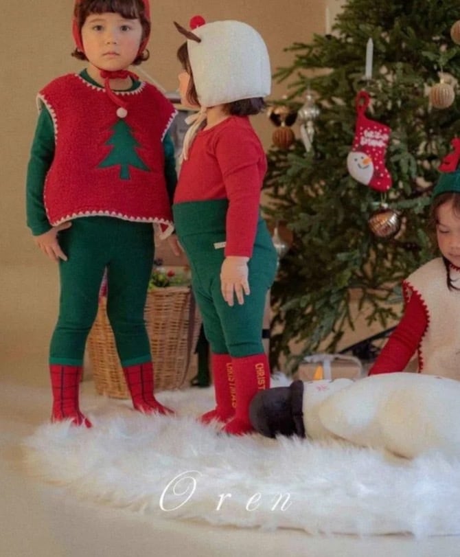 オーレン OLEN 韓国子供服 韓国ブランド 可愛い おしゃれ 姉妹 女の子 おんなのこ 男の子 おとこのこ 兄弟 ベスト クリスマス クリスマスカラー