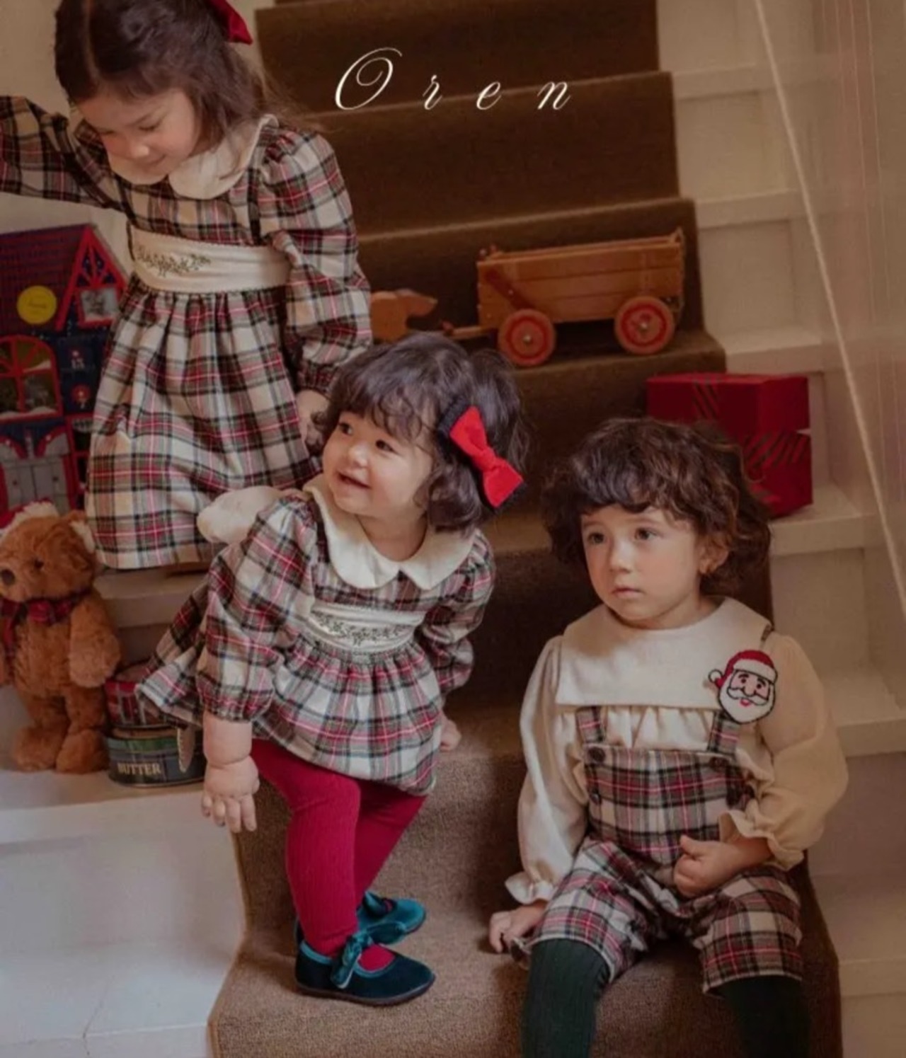オーレン OLEN 韓国子供服 韓国ブランド 可愛い おしゃれ 姉妹 女の子 おんなのこ 男の子 おとこのこ 兄弟 ズボン パンツ クリスマス クリスマスカラー
