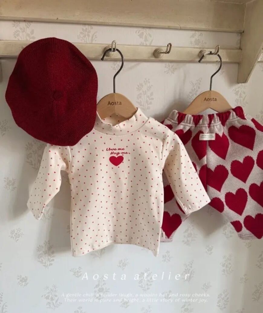 aosta アオスタ 韓国子供服 韓国ブランド 冬 冬服 おしゃれ お洒落 こどもふく お揃い おそろい むすめふく 女の子 おんなのこ 姉妹 ロンT ドット ハート