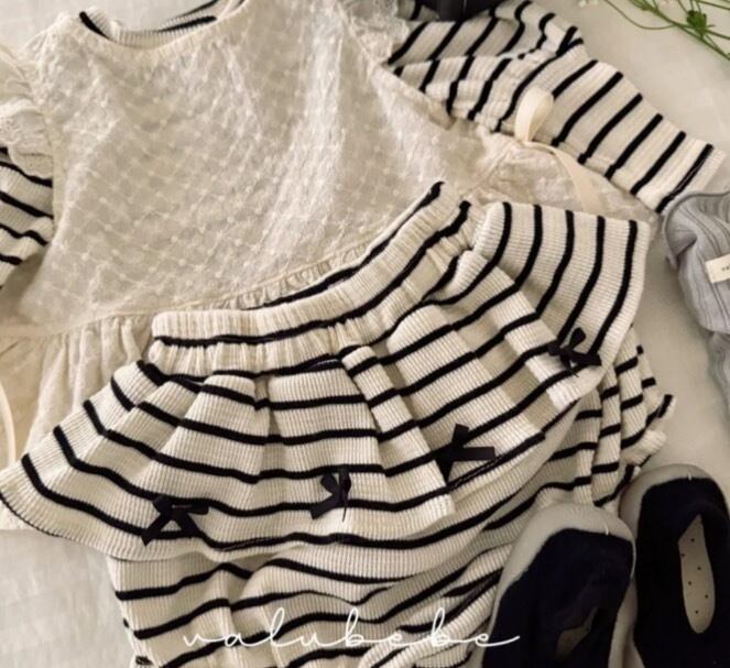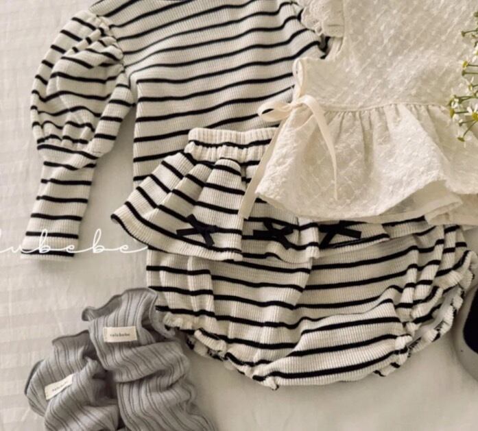 韓国子供服 韓国ブランド valubebe アンシャーリー こどもふく 女の子 むすめふく おしゃれ かわいい 春服 お出かけ ブルマ ボーダー