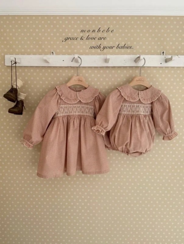 韓国子供服 韓国ブランド monbebe こどもふく 女の子 むすめふく おしゃれ かわいい 春服 お出かけ ワンピ ワンピース 姉妹 お揃い