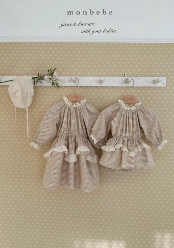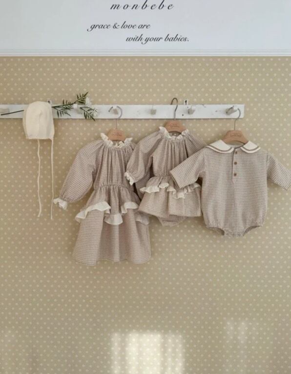 韓国子供服 韓国ブランド monbebe こどもふく 女の子 むすめふく おしゃれ かわいい 春服 お出かけ ロンパ ロンパース 姉妹 お揃い