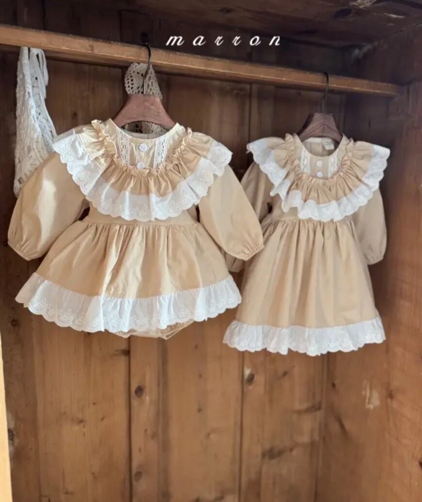 マロン marron 春 2026 韓国子供服 韓国ブランド 可愛い おしゃれ 姉妹 女の子 おんなのこ ワンピ ワンピース お揃い