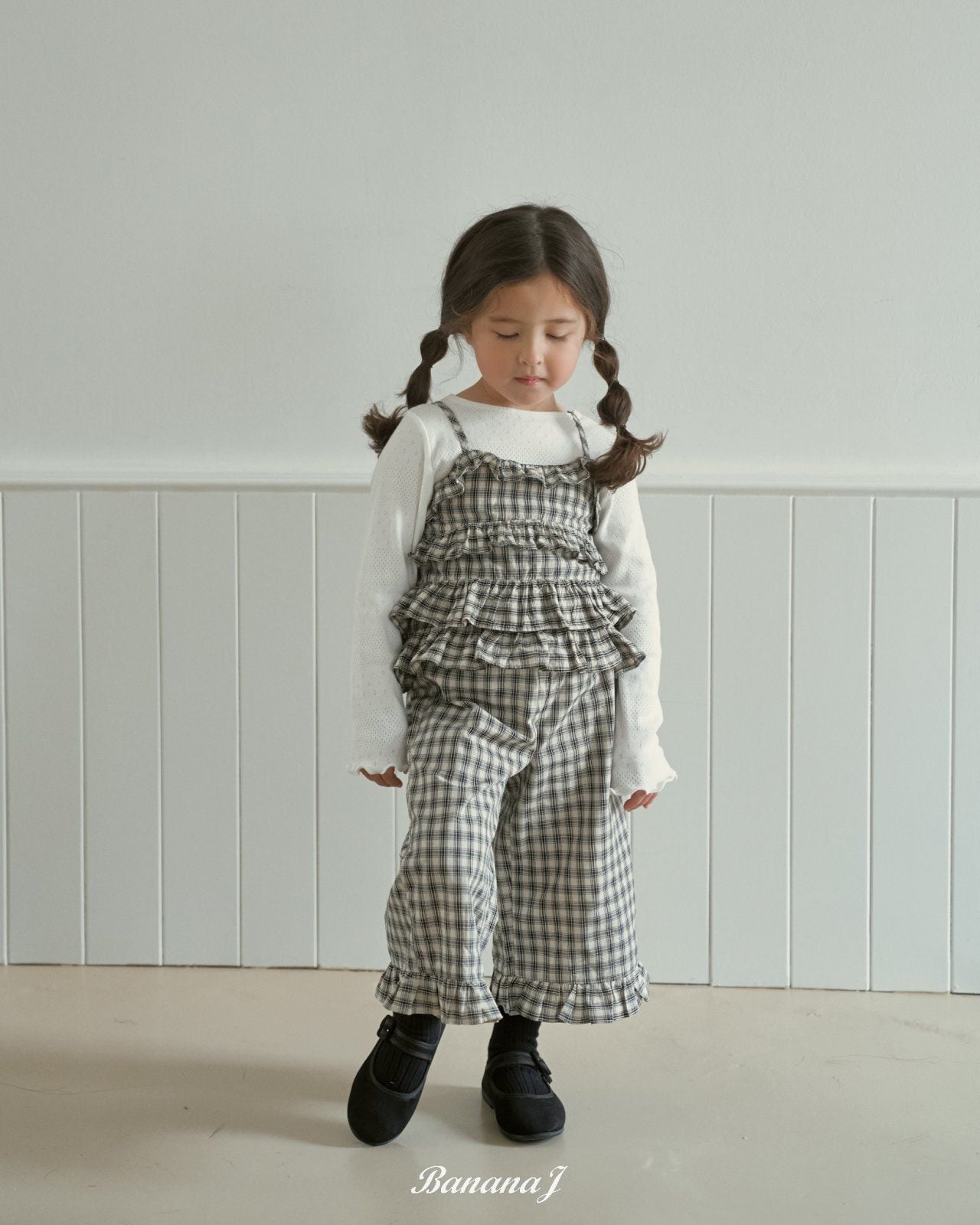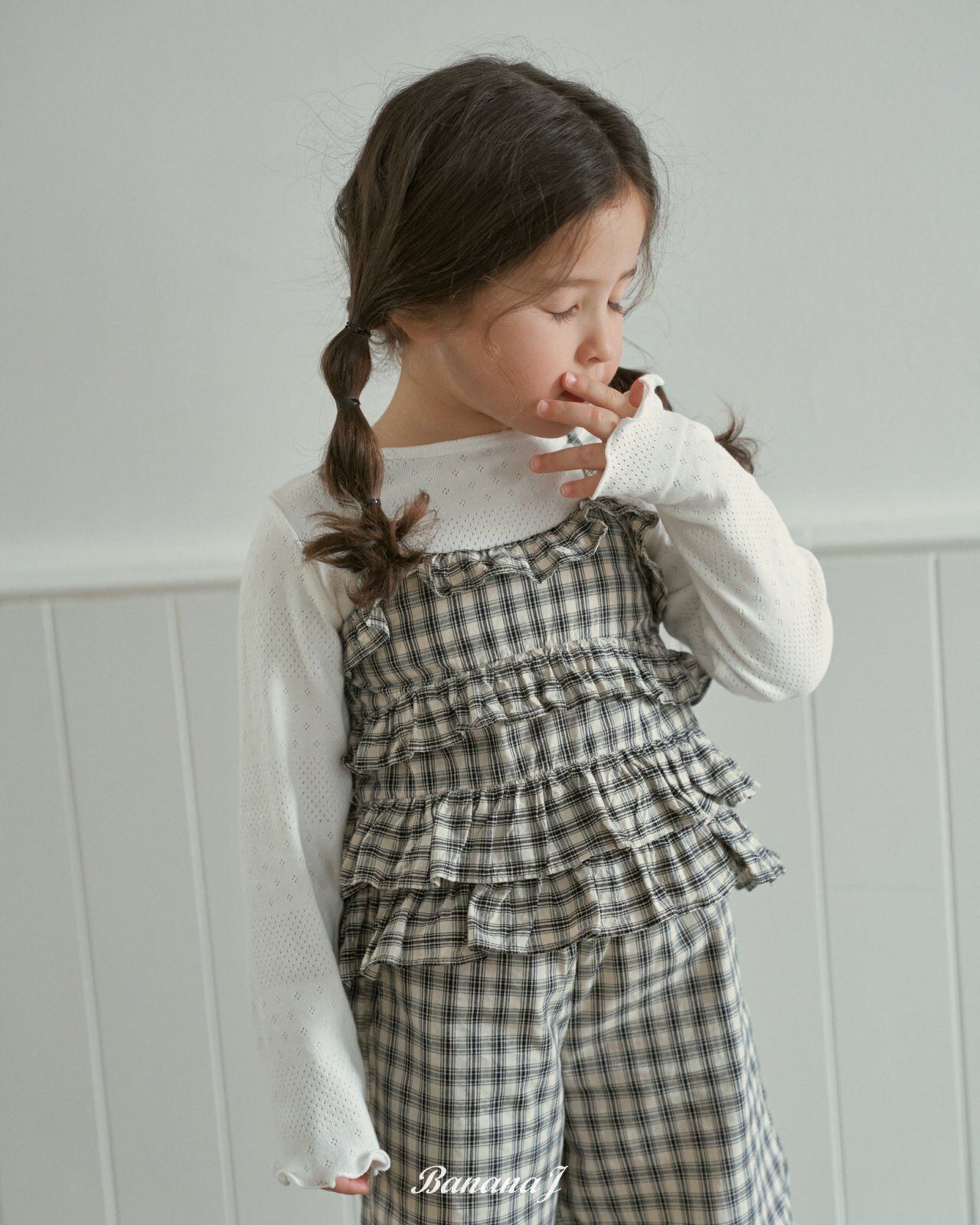 韓国子供服 バナナJ bananaj こどもふく 女の子 春服 お出かけコーデ かわいい おしゃれ トップス ベスト パンツ お揃い フリフリ