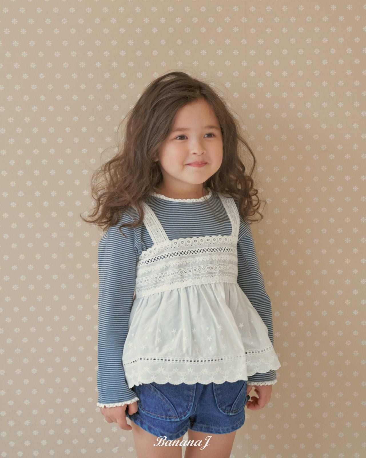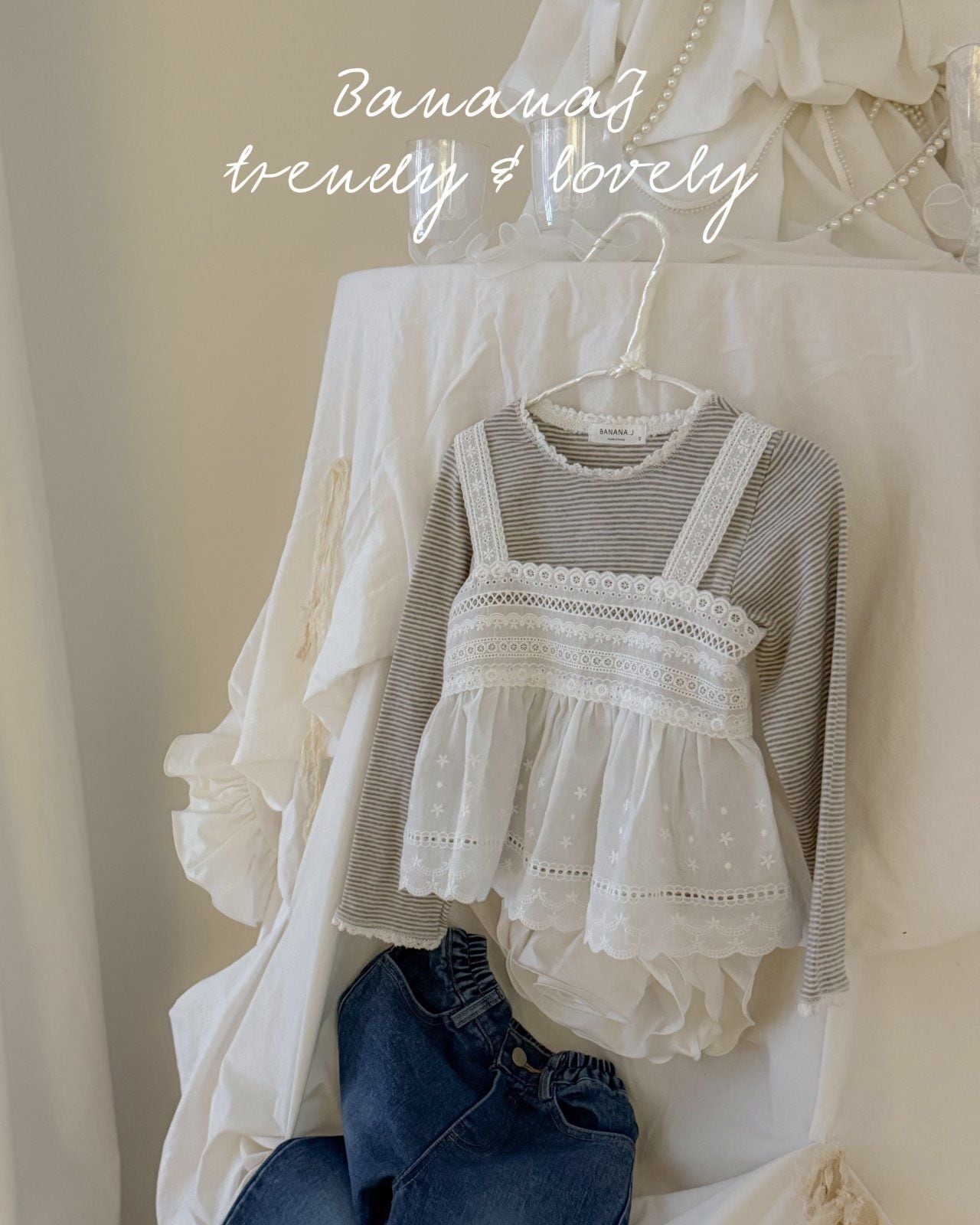韓国子供服 バナナJ bananaj こどもふく 女の子 春服 お出かけコーデ かわいい おしゃれ トップス ベスト パンツ お揃い フリフリ