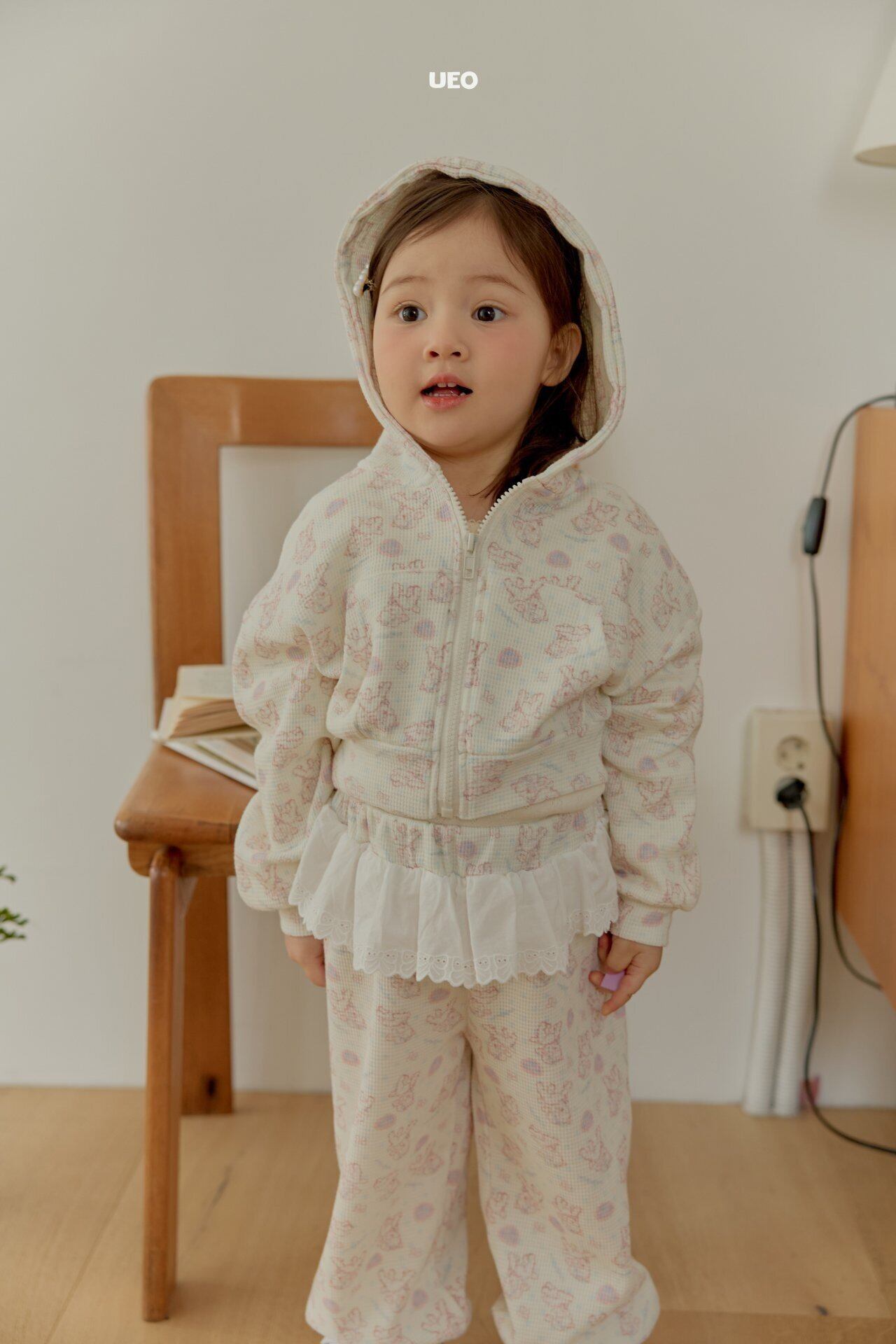 韓国子供服 UEO こどもふく 女の子 春服 お出かけコーデ かわいい おしゃれ チェック ふりふり トップス ベスト パンツ お揃い キャップ