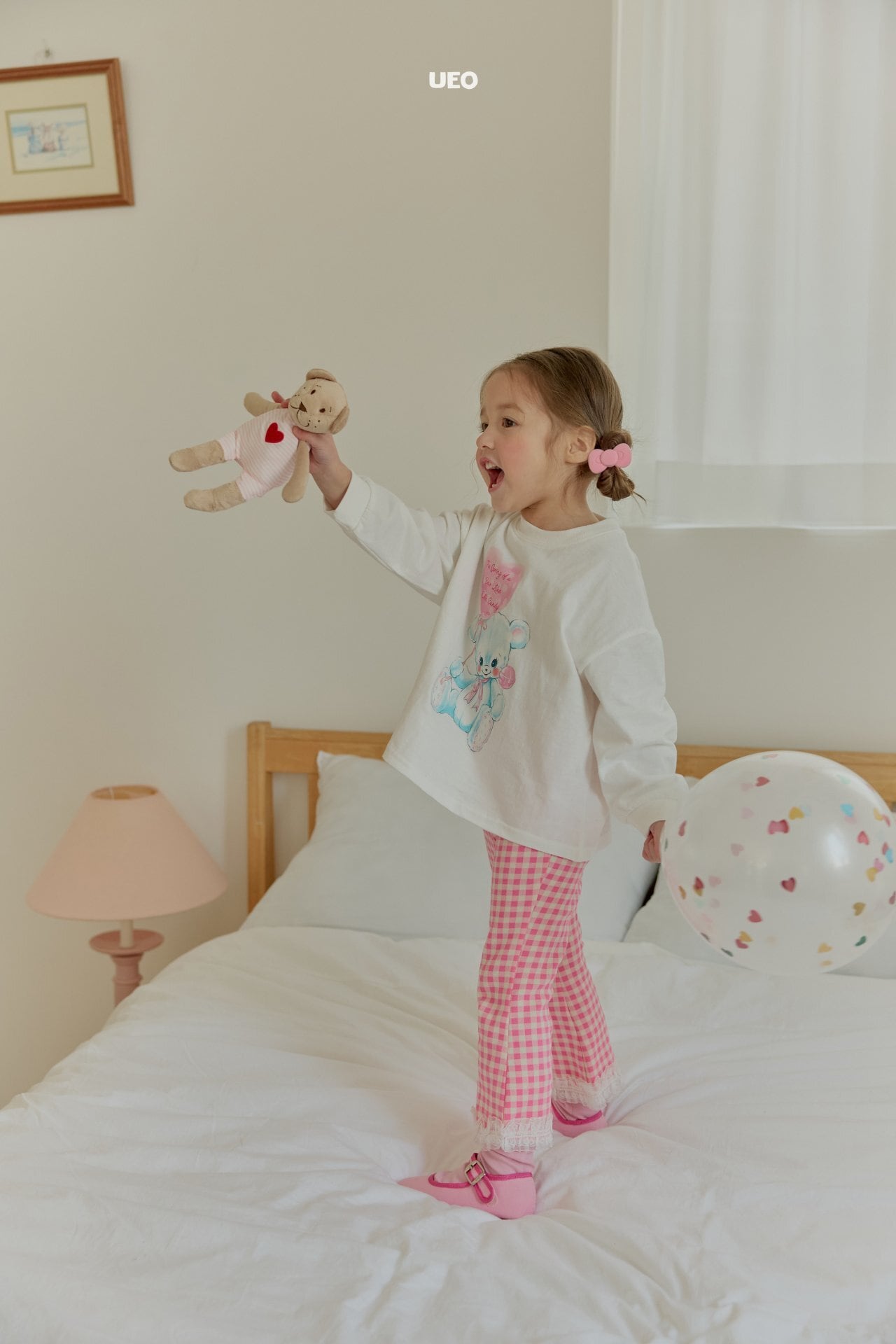 韓国子供服 UEO こどもふく 女の子 春服 お出かけコーデ かわいい おしゃれ チェック ふりふり トップス ベスト パンツ お揃い キャップ