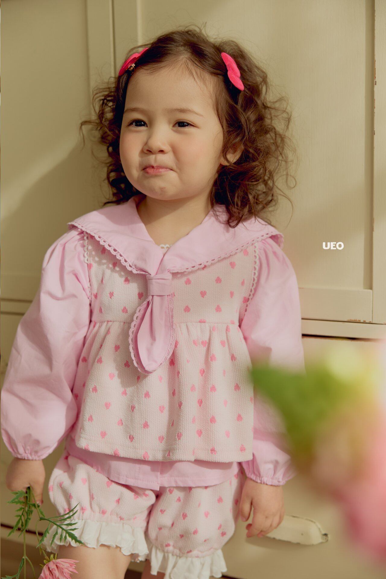 韓国子供服 UEO こどもふく 女の子 春服 お出かけコーデ かわいい おしゃれ チェック ふりふり トップス ベスト パンツ お揃い キャップ