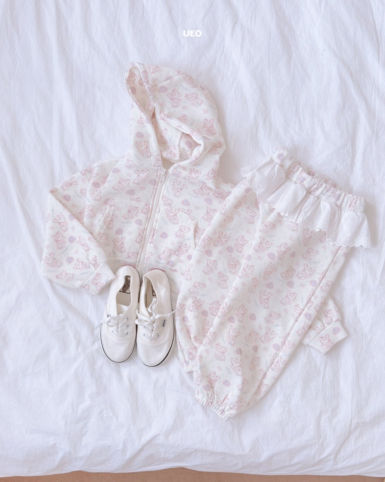 韓国子供服 UEO こどもふく 女の子 春服 お出かけコーデ かわいい おしゃれ チェック ふりふり トップス ベスト パンツ お揃い キャップ