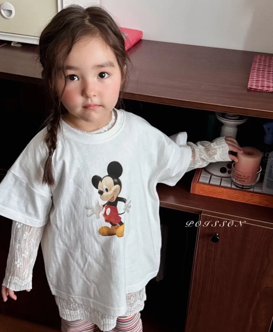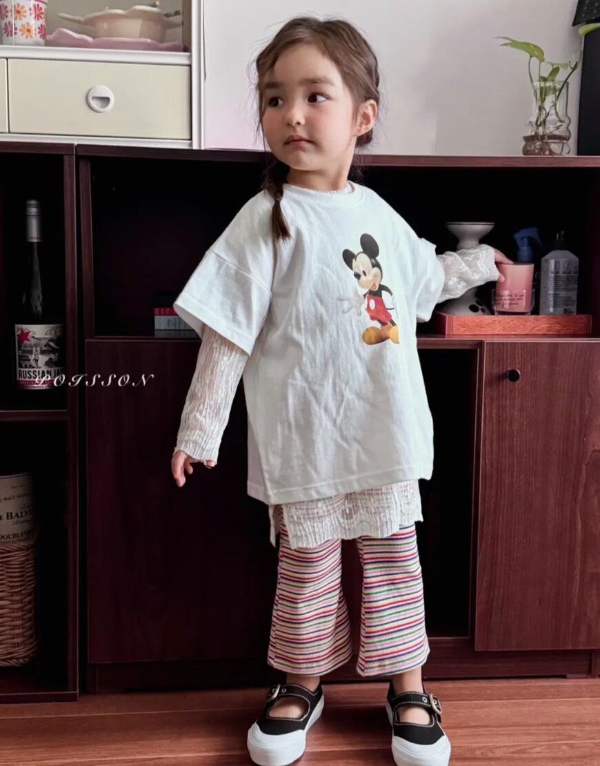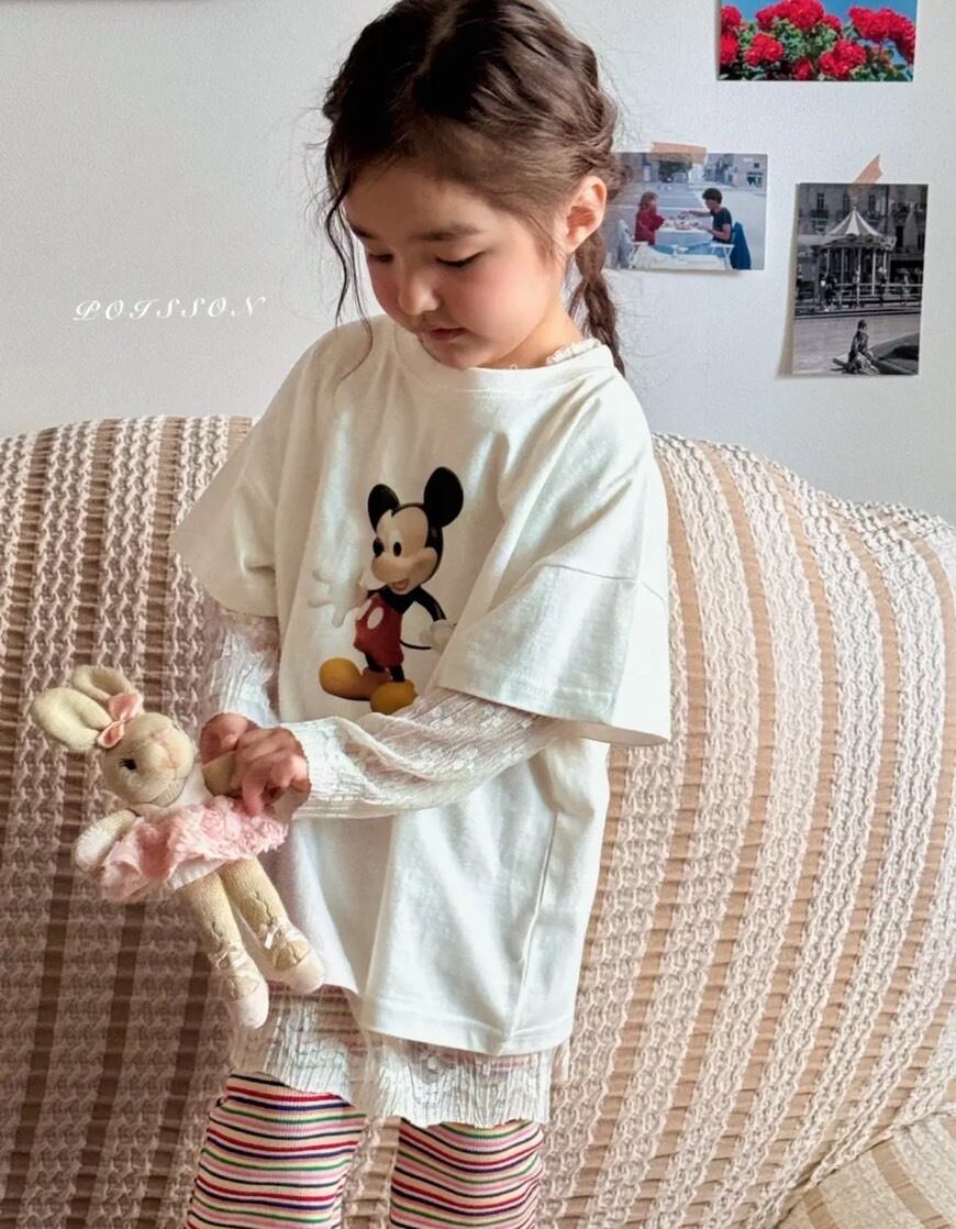 韓国子供服 韓国ブランド ポイズン 春 春服 こどもふく 女の子 おんなのこ 姉妹 お揃い おそろい おしゃれ ティシャツ ミッキー