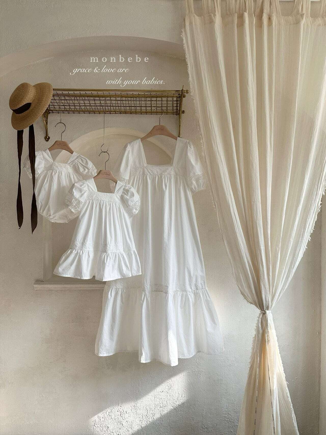 韓国子供服 韓国ブランド monbebe こどもふく 女の子 むすめふく おしゃれ かわいい 夏 夏服 お出かけ 親子 姉妹 お揃い ワンピ ワンピース