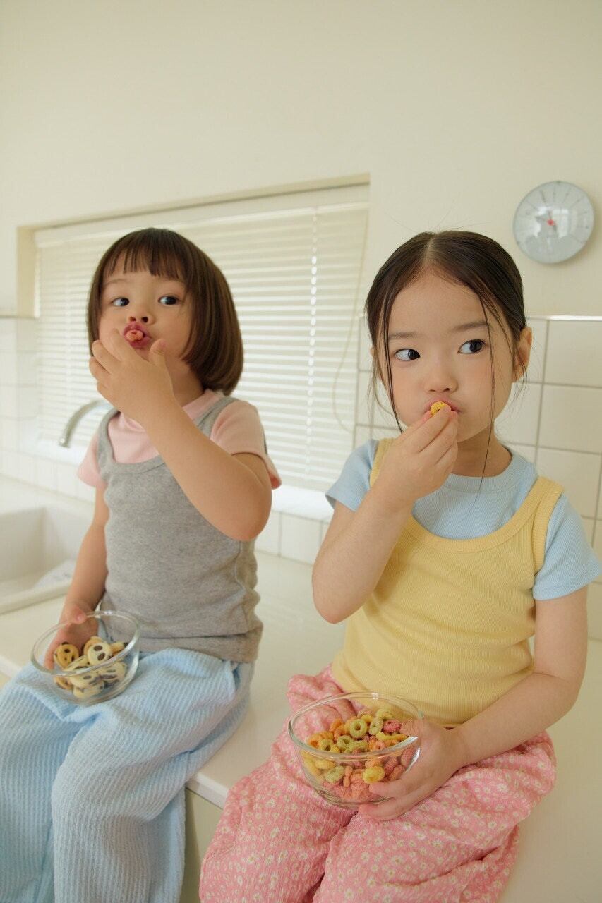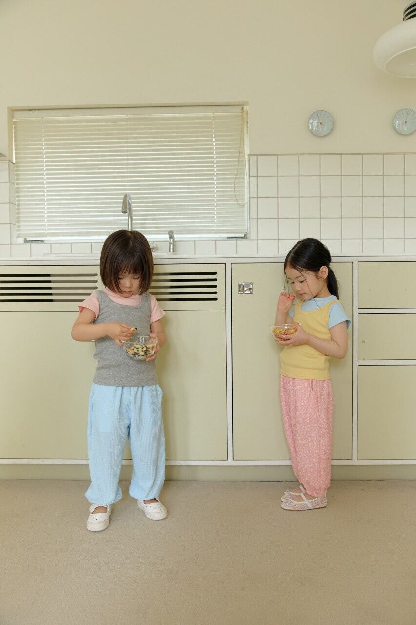 韓国子供服 デイリーべべ DAILYBEBE こどもふく 女の子 男の子 おしゃれ かわいい パステルカラー 夏服 お出かけコーデ お揃い トップス スカート パンツ