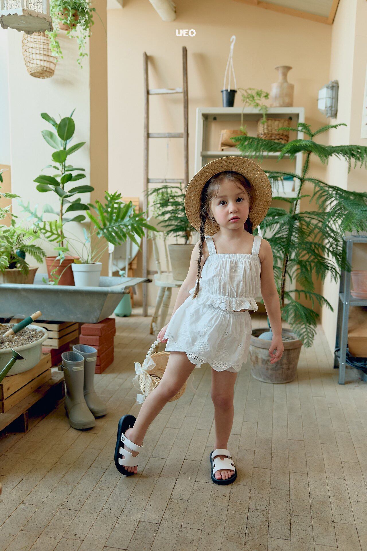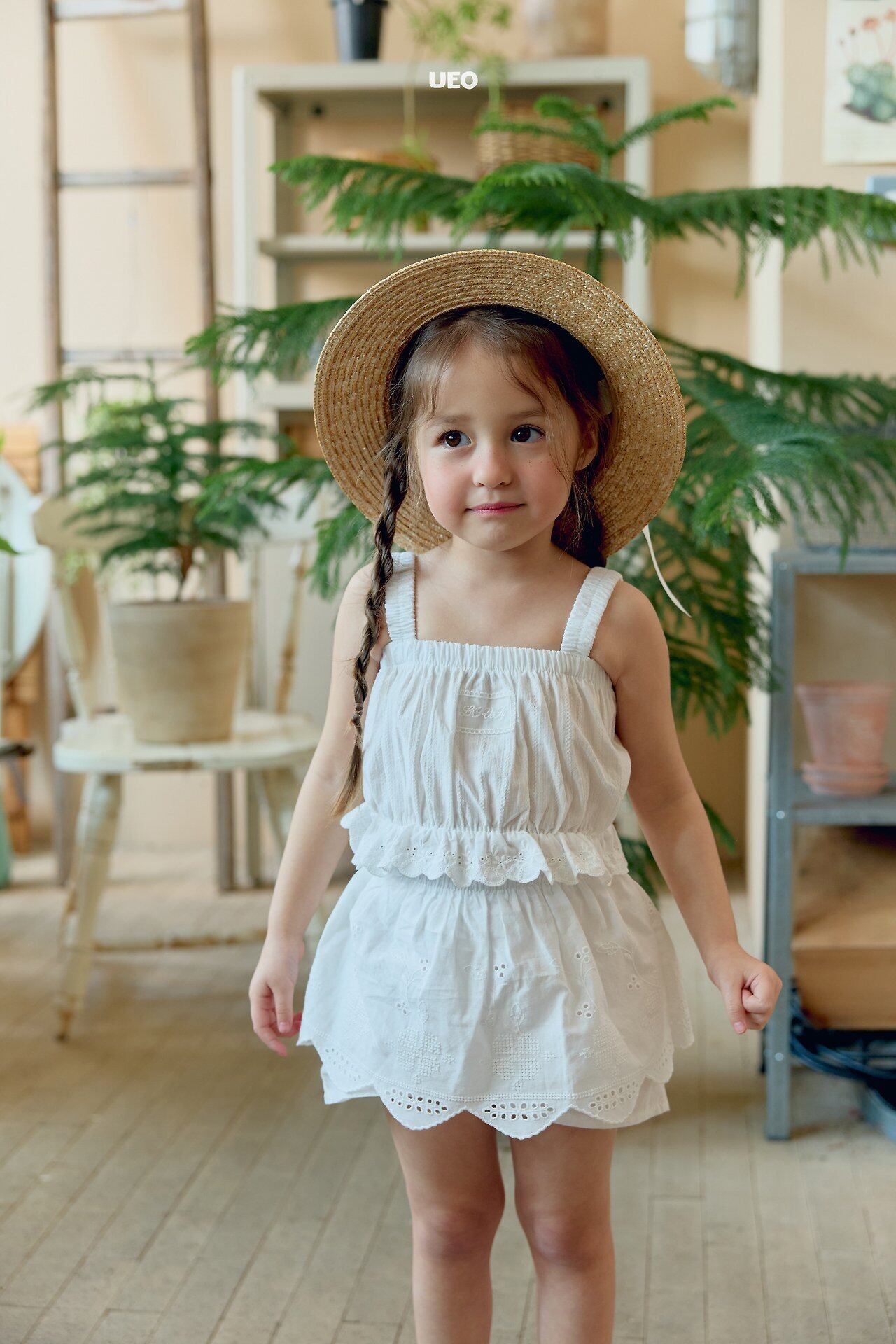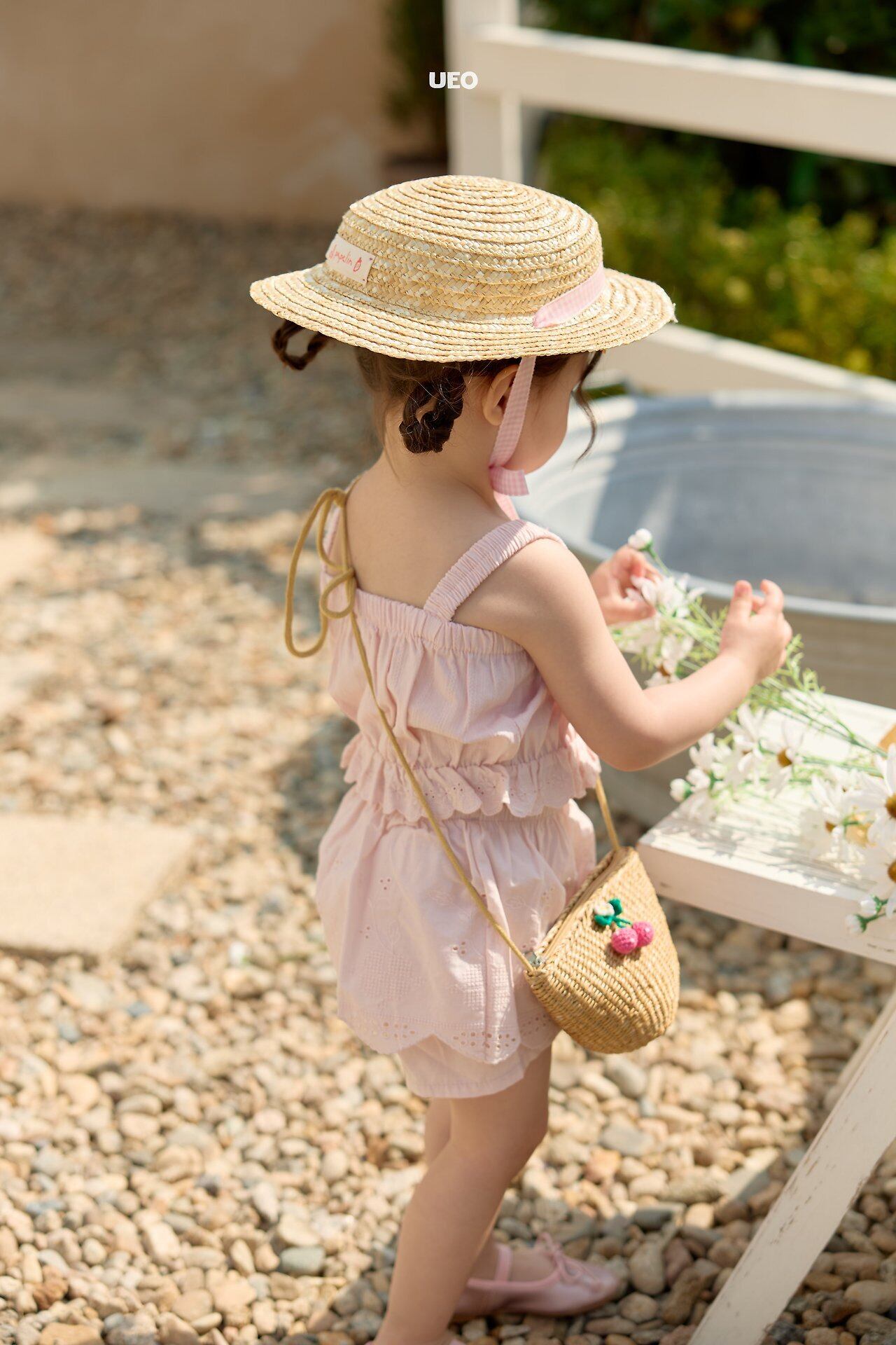 韓国子供服 UEO こどもふく 女の子 夏服 お出かけコーデ かわいい おしゃれ チェック ふりふり トップス パンツ お揃い キャップ