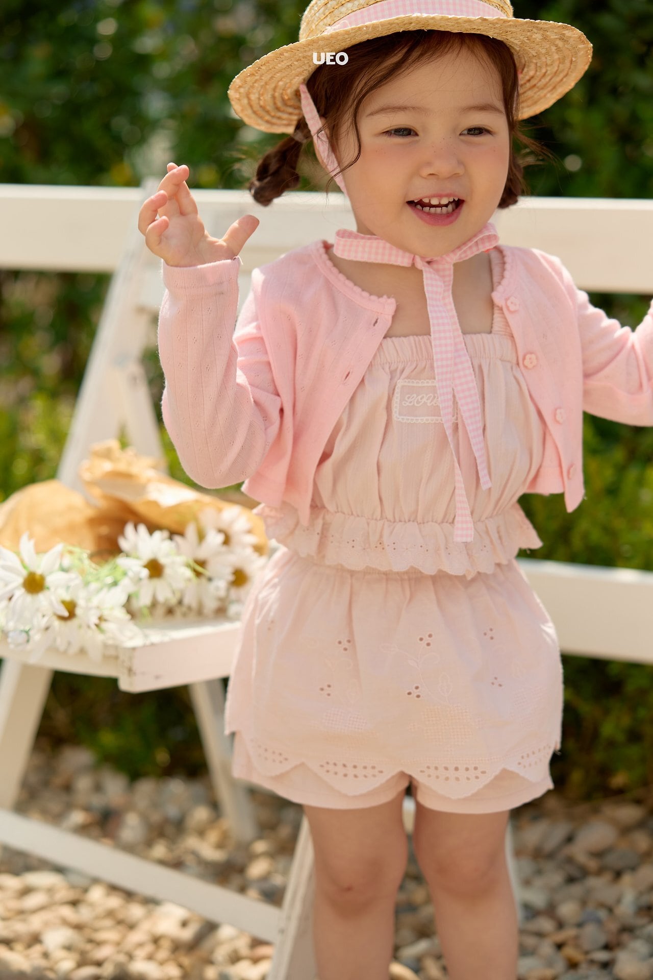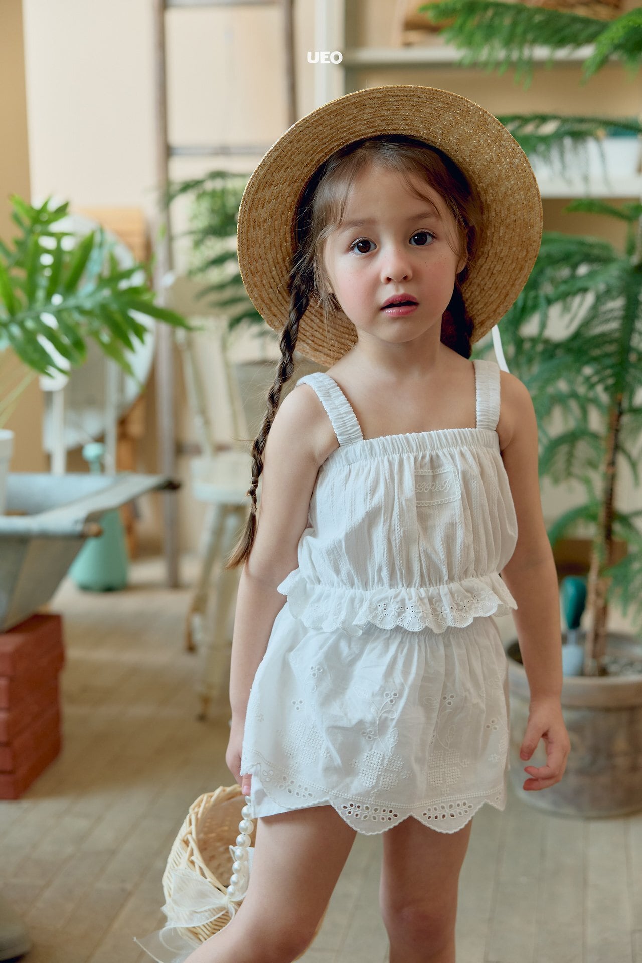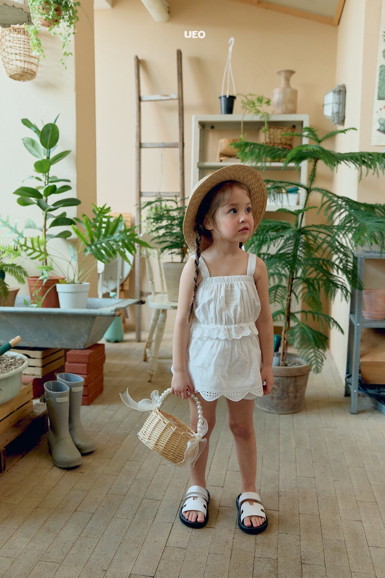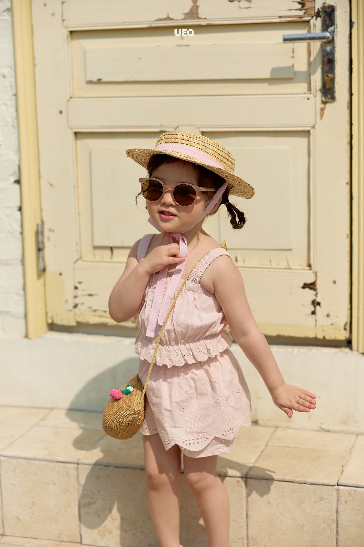 韓国子供服 UEO こどもふく 女の子 夏服 お出かけコーデ かわいい おしゃれ チェック ふりふり トップス パンツ お揃い キャップ