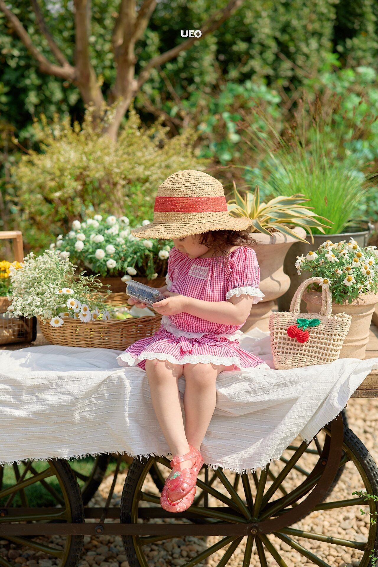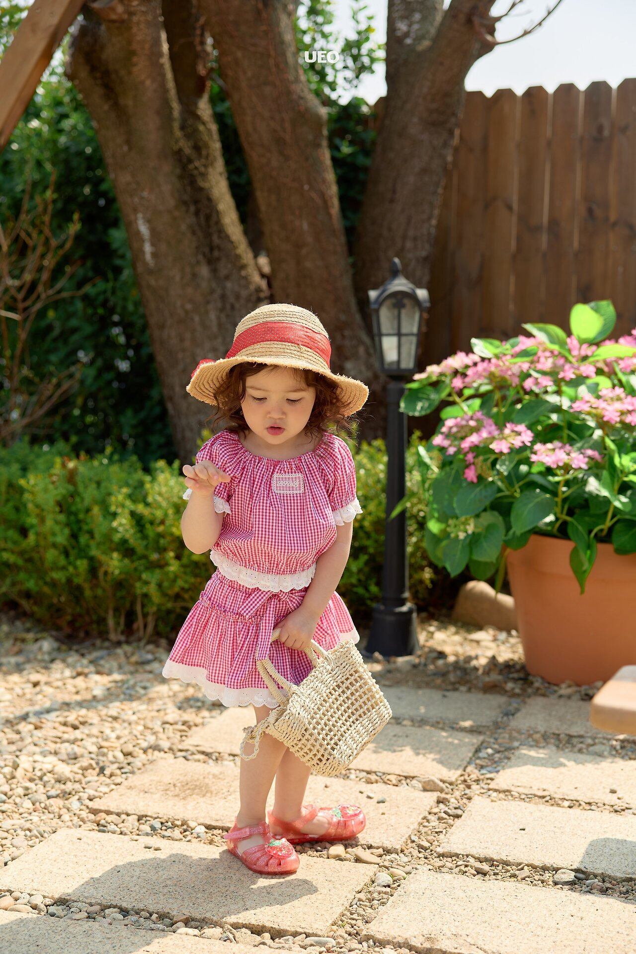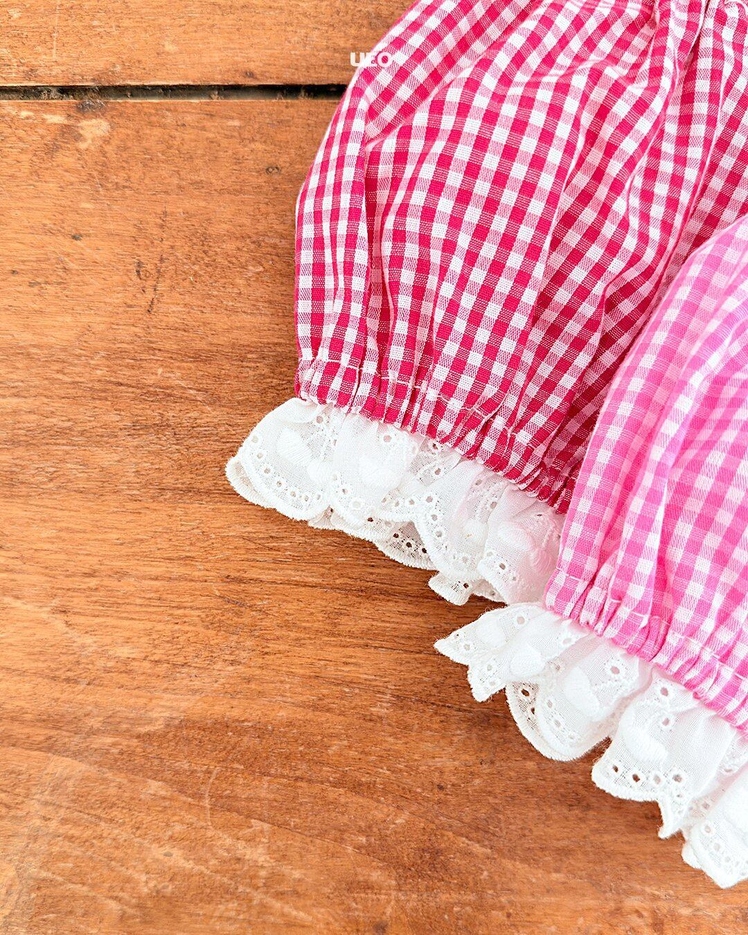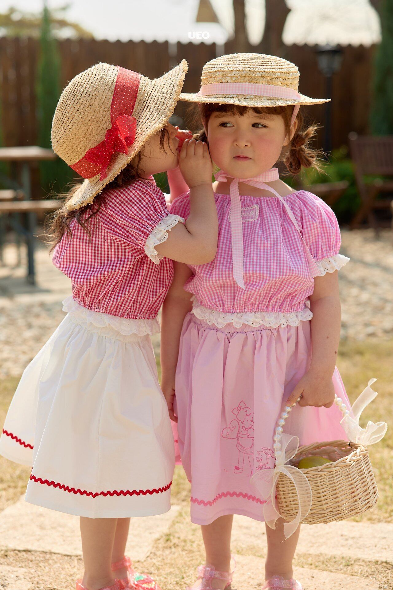 韓国子供服 UEO こどもふく 女の子 夏服 お出かけコーデ かわいい おしゃれ チェック ふりふり トップス パンツ お揃い キャップ