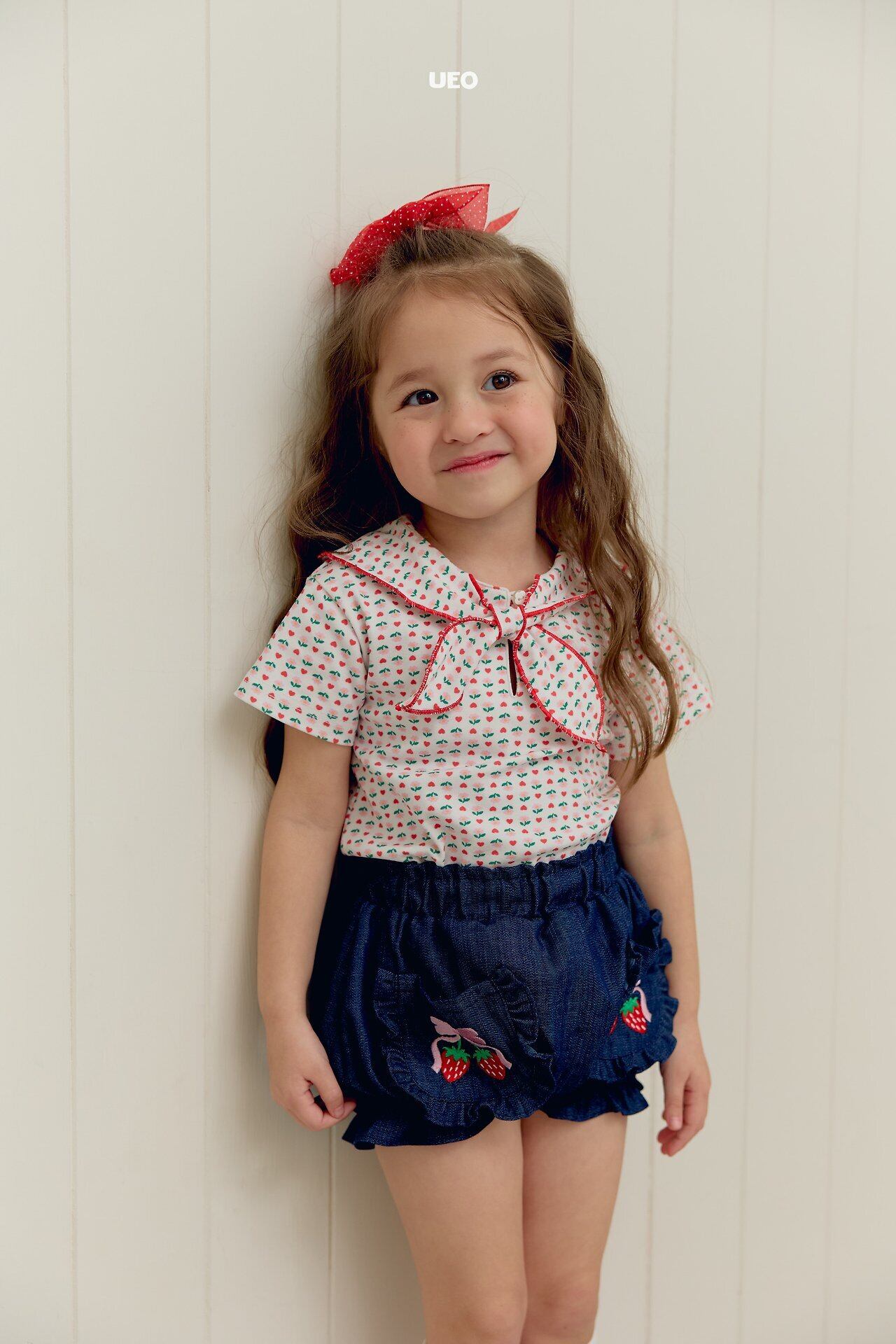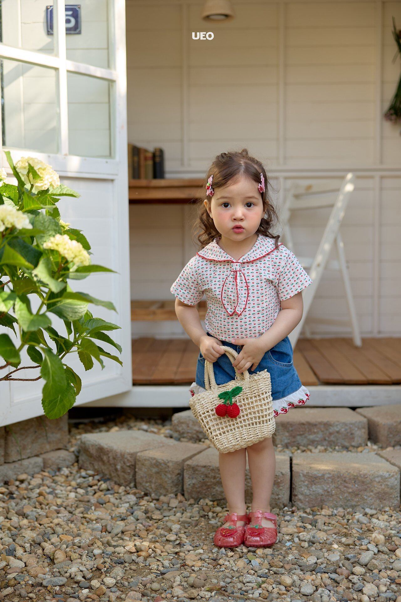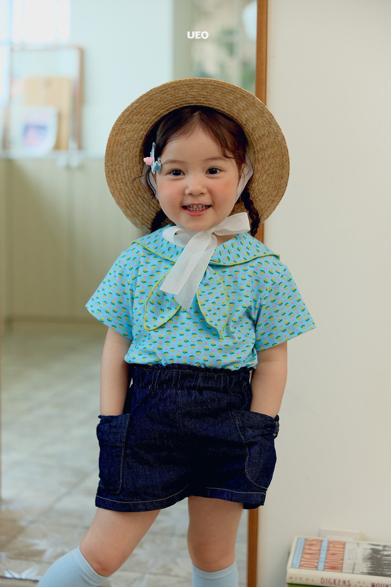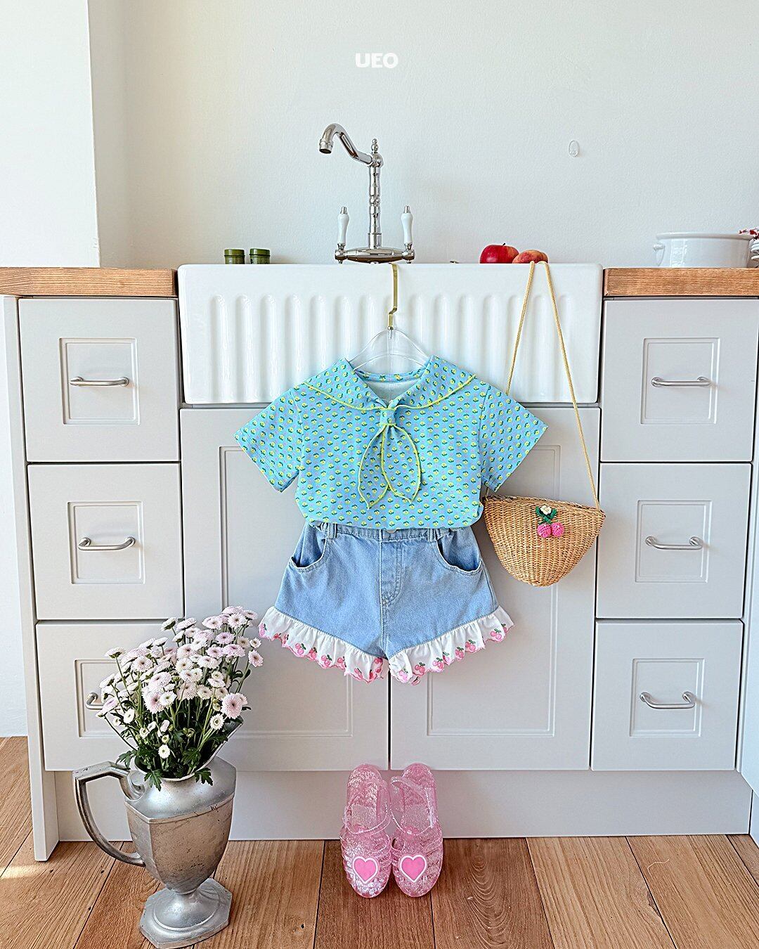 韓国子供服 UEO こどもふく 女の子 夏服 お出かけコーデ かわいい おしゃれ チェック ふりふり トップス パンツ お揃い キャップ