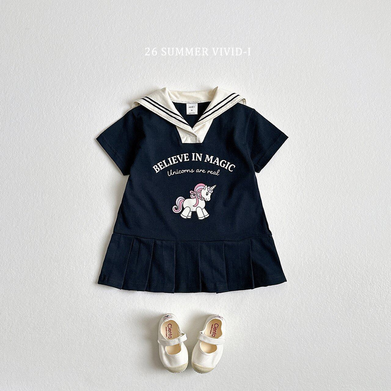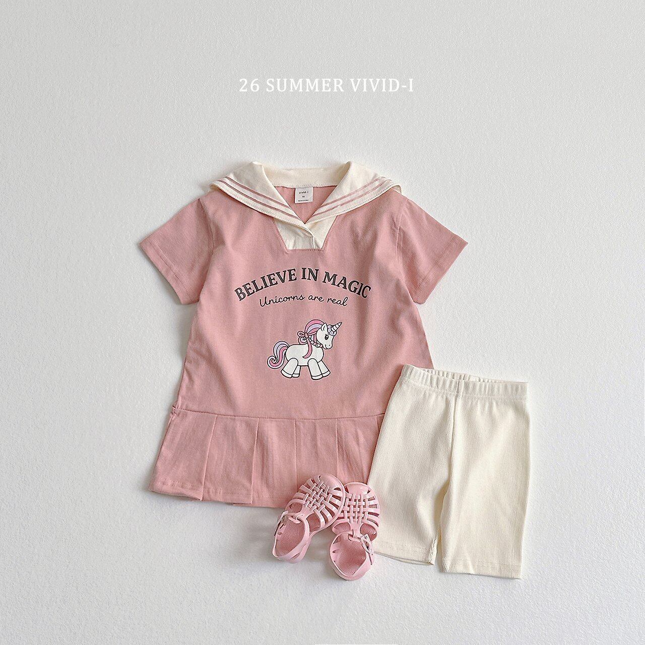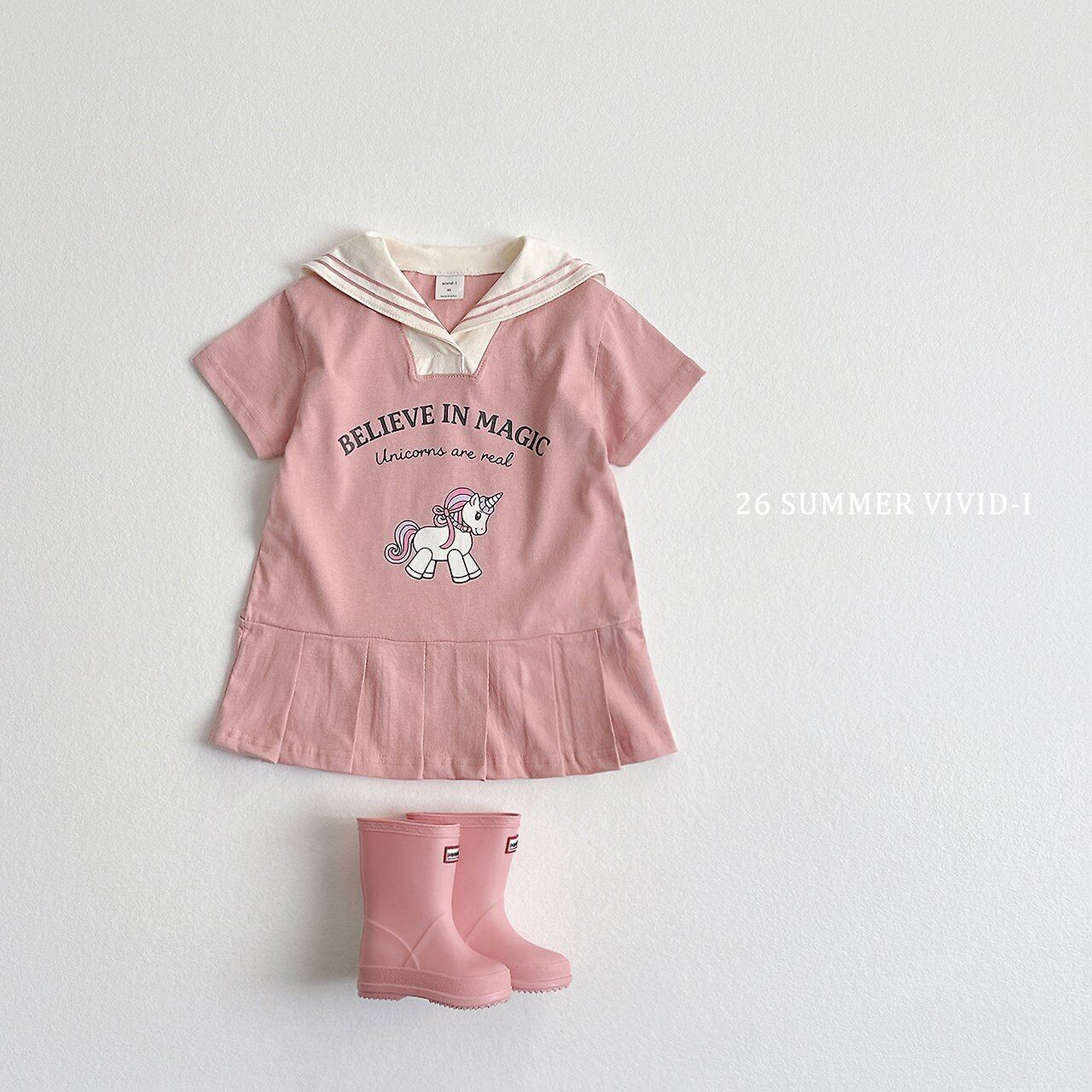 韓国子供服 ビビットアイ vivid-i こどもふく 女の子 姉妹 色違い トップス 夏 夏服 半袖 ワンピ ワンピース ユニコーン