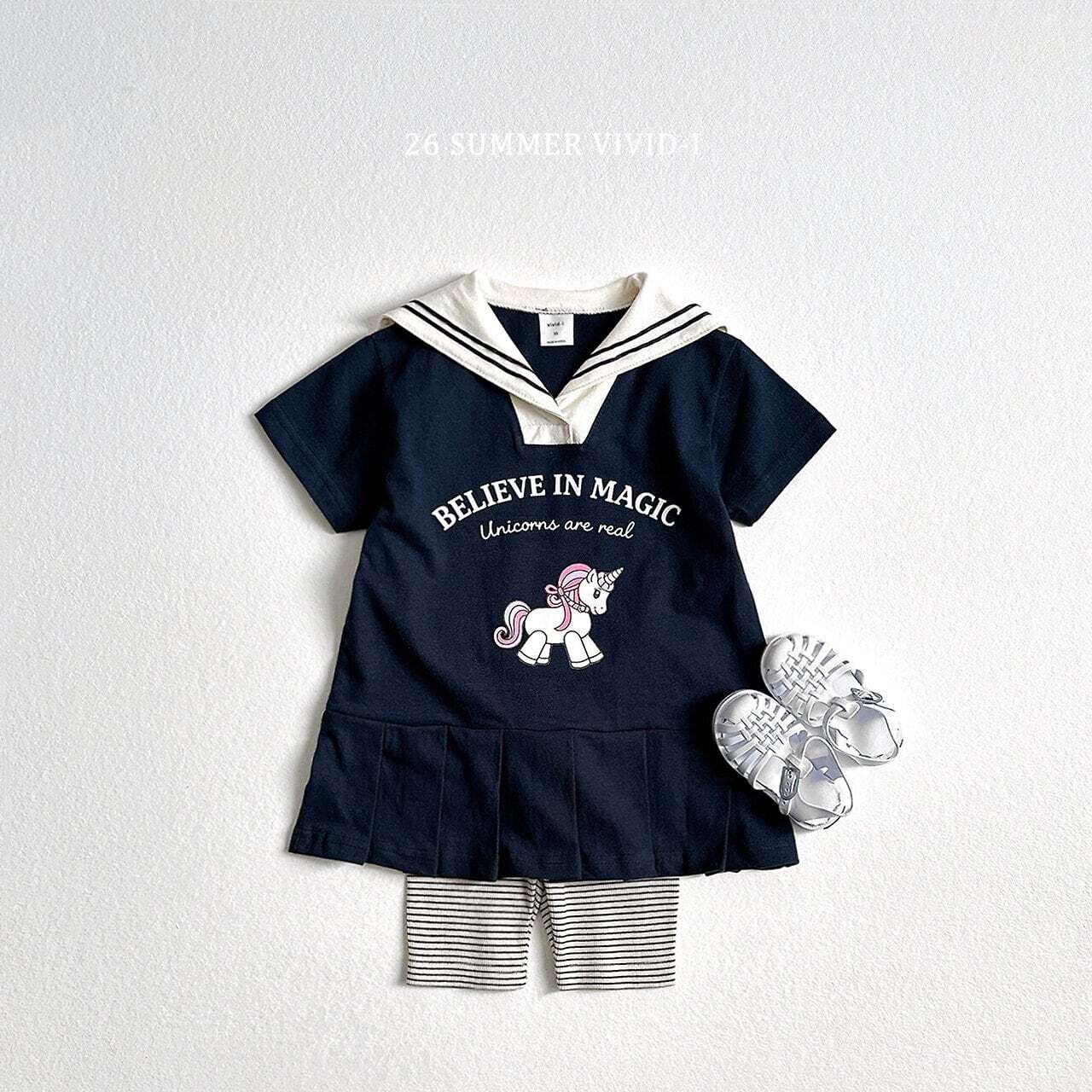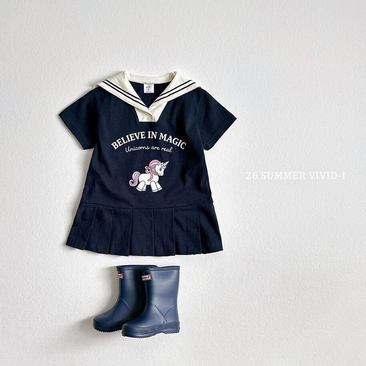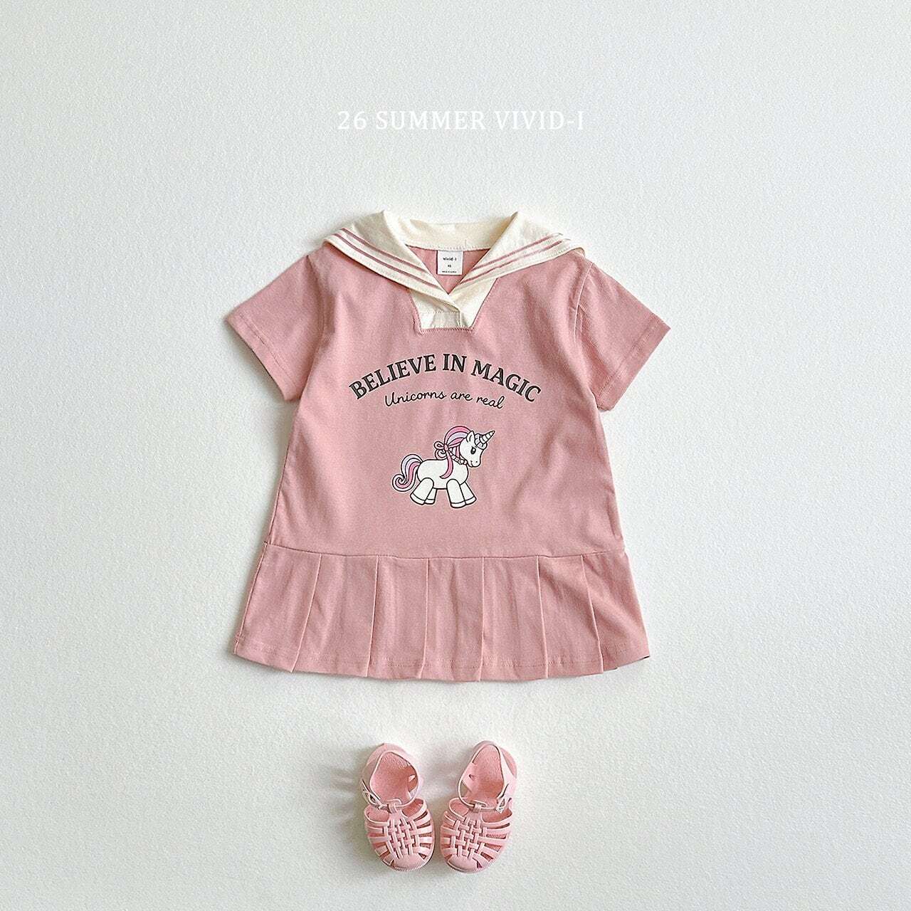 韓国子供服 ビビットアイ vivid-i こどもふく 女の子 姉妹 色違い トップス 夏 夏服 半袖 ワンピ ワンピース ユニコーン