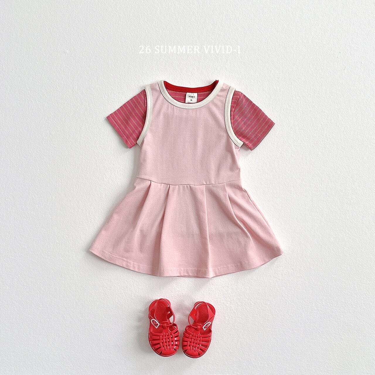 韓国子供服 ビビットアイ vivid-i こどもふく 女の子 姉妹 色違い トップス 夏 夏服 半袖 ワンピ ワンピース テニス