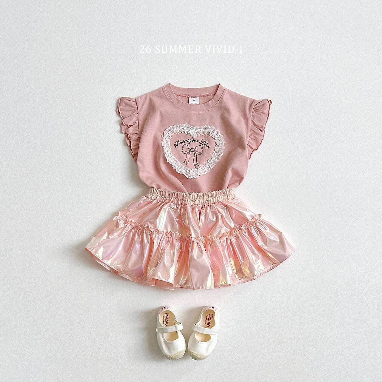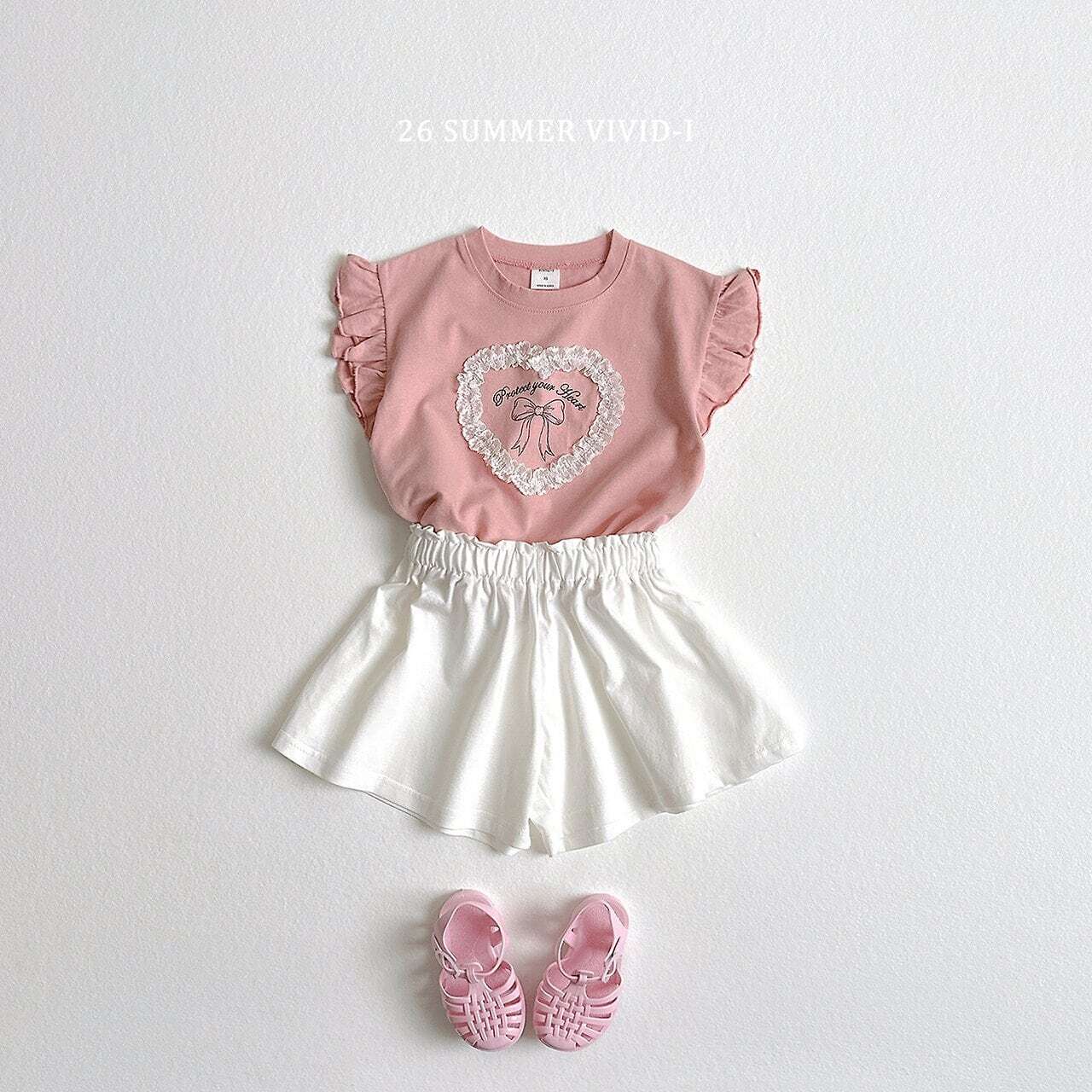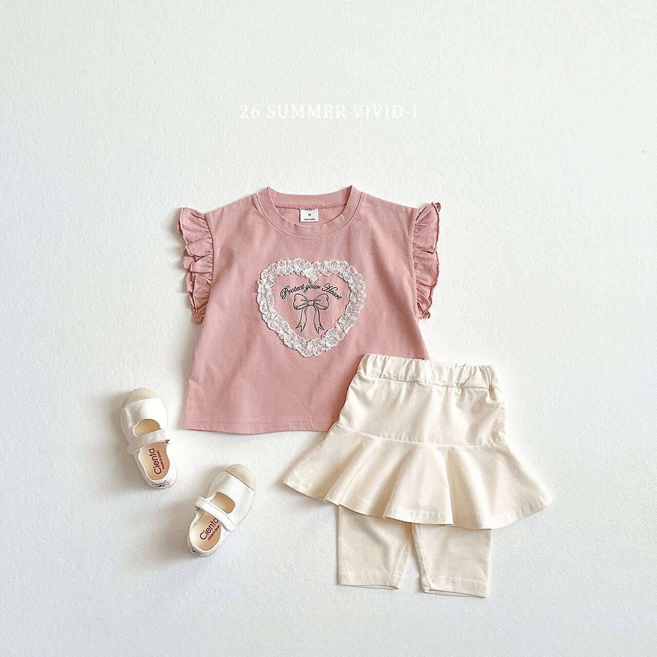 韓国子供服 ビビットアイ vivid-i こどもふく 女の子 姉妹 色違い トップス 夏 夏服 ティシャツ ハート