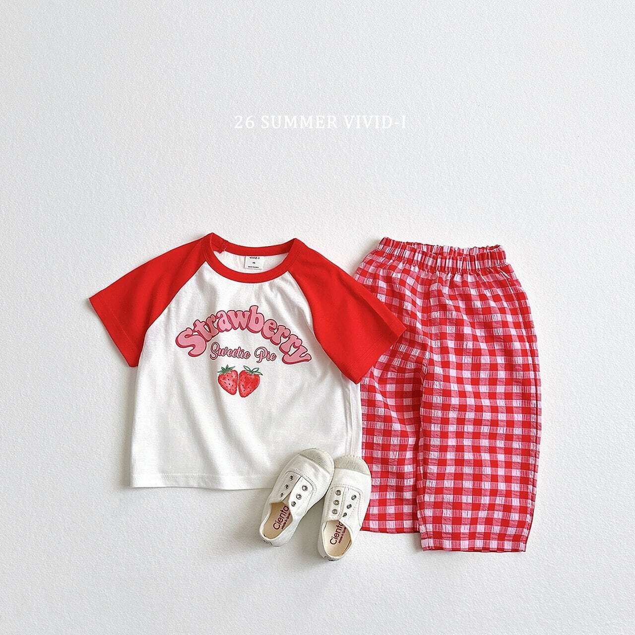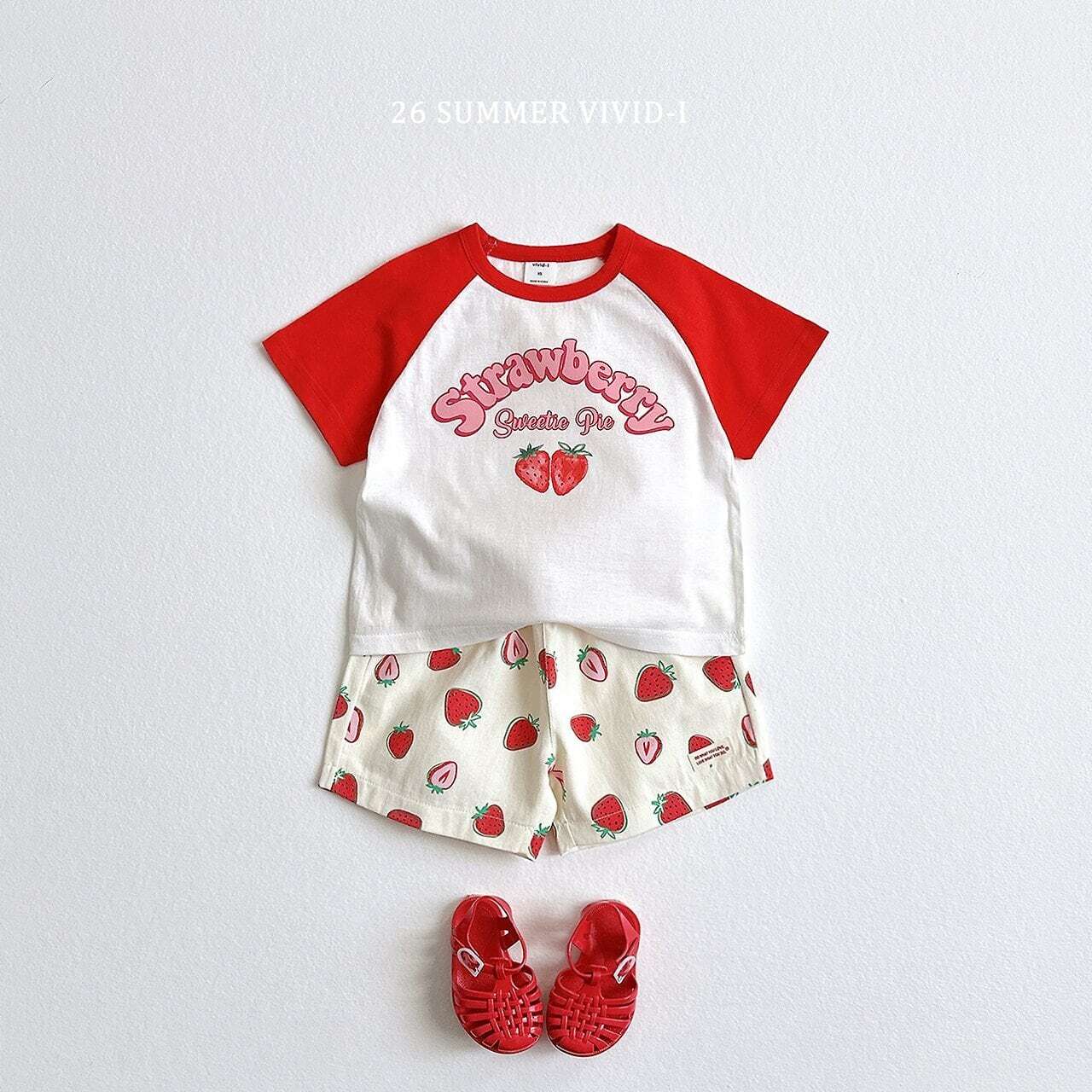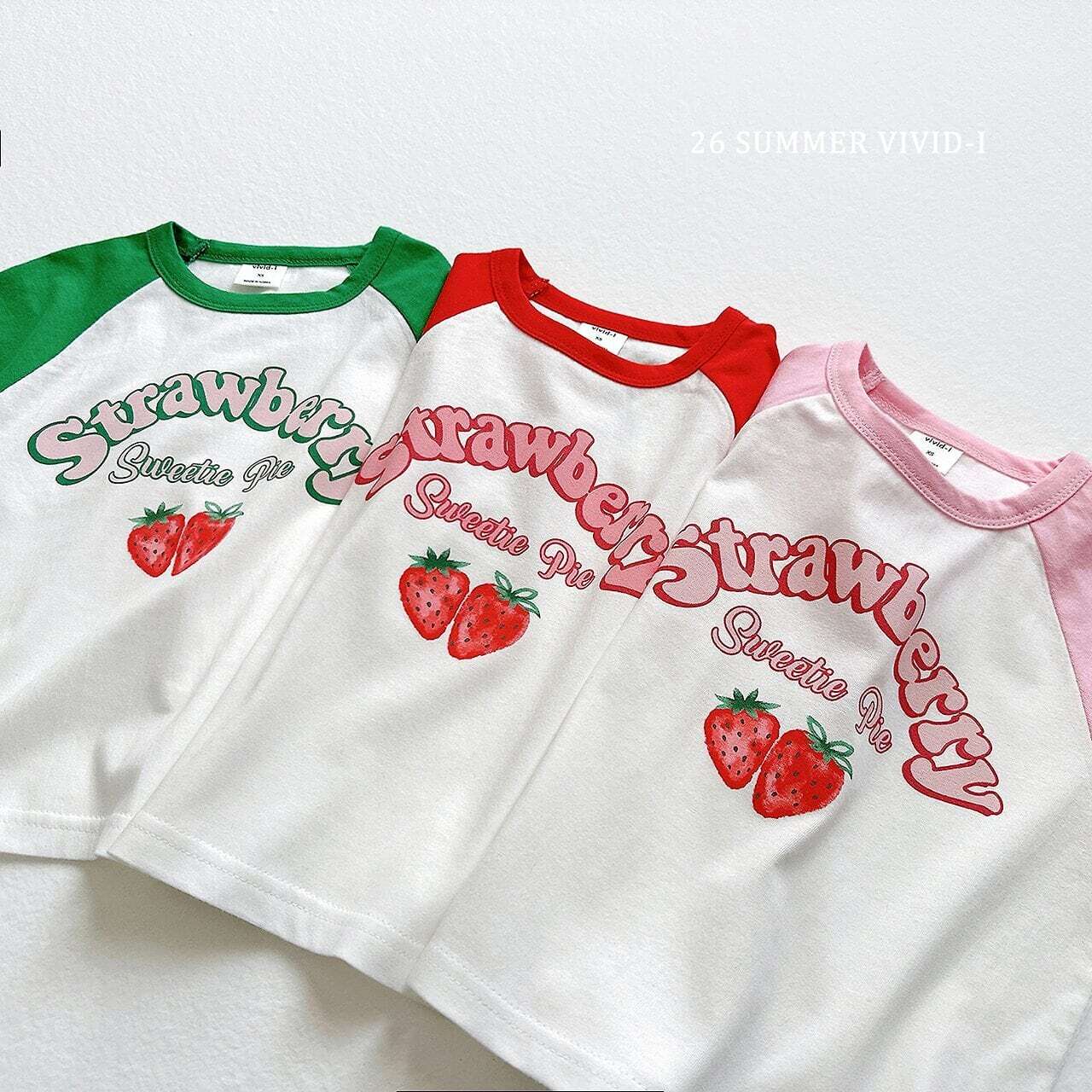 韓国子供服 ビビットアイ vivid-i こどもふく 女の子 姉妹 色違い トップス 夏 夏服 ティシャツ いちご
