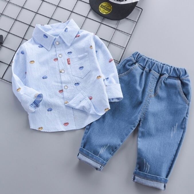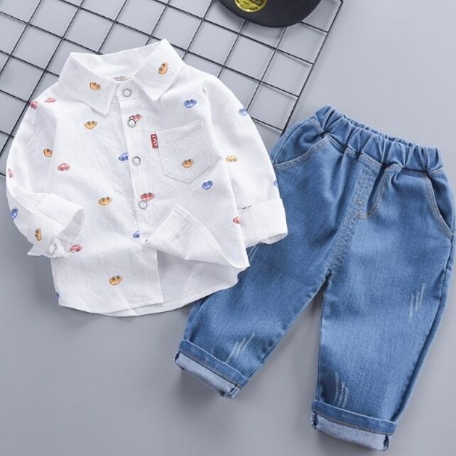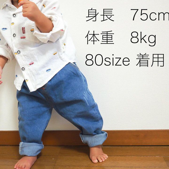 子供服 男の子 くるま 車 赤ちゃん デニム シャツ トップス ホワイト ブルー かっこいい
