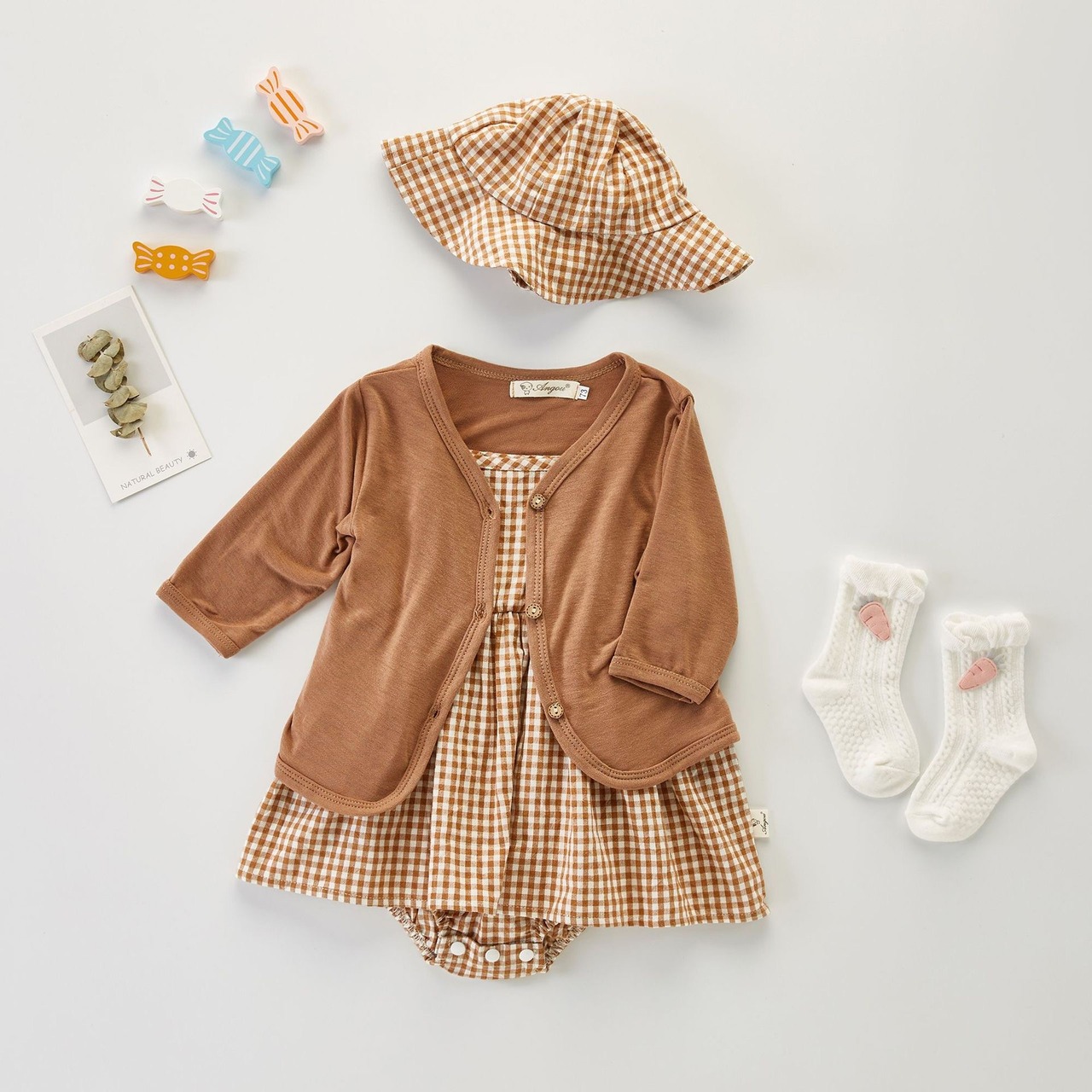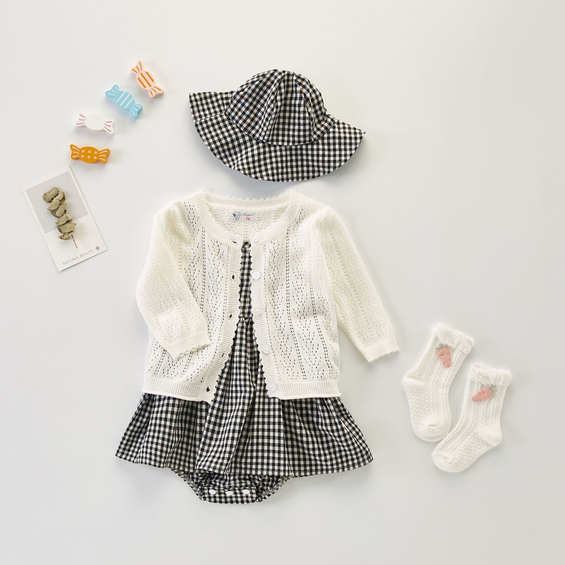 帽子付き キャミ ロンパース 65-100