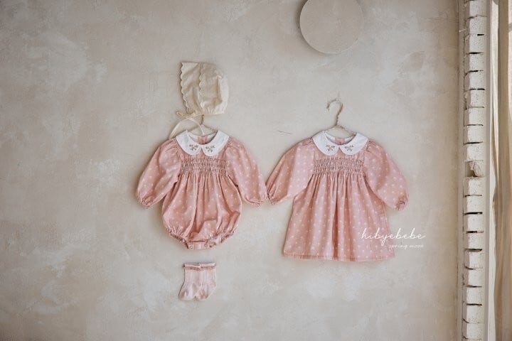 【SALE】HIBYEBEBE / ローズカラースモッグワンピース 90