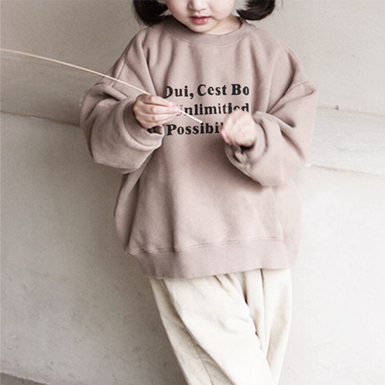 子供服 こどもふく おしゃれ かわいい プチプラ 女の子 男の子 トレーナー モカ ホワイト カーキ ブラウン 80 90 100 110 120 130