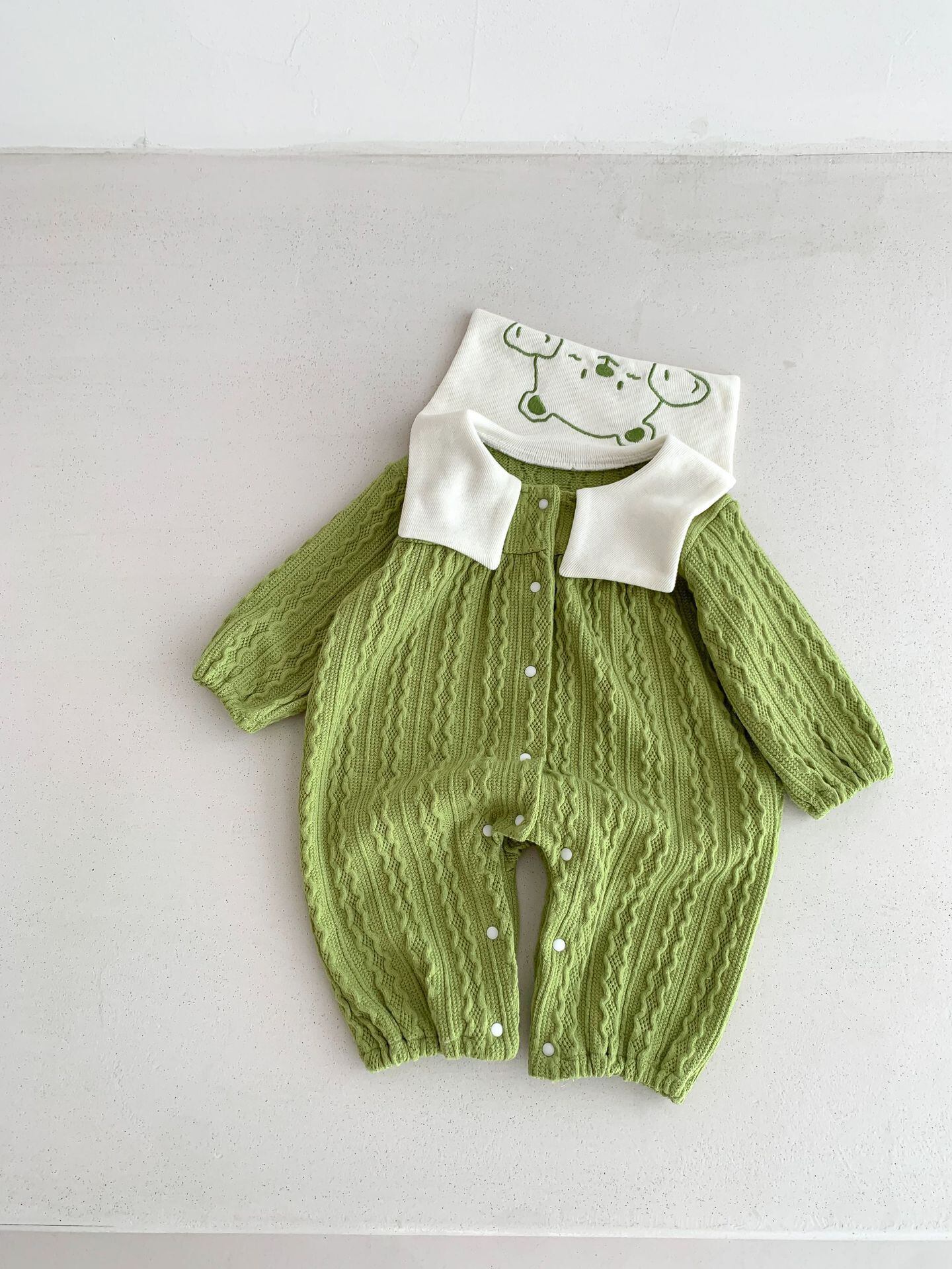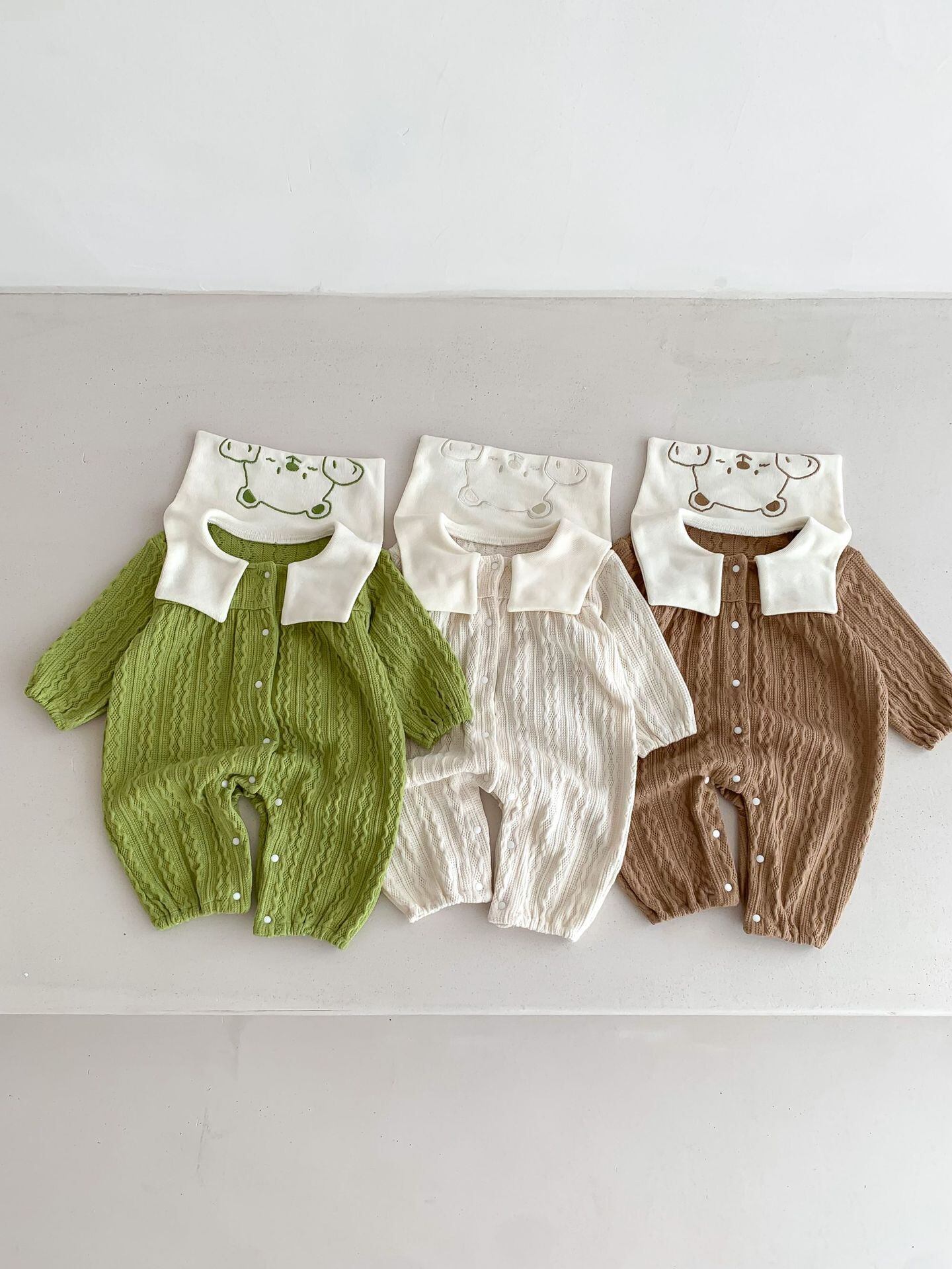 おしゃれ 可愛い ベビー服 子供服 男の子 女の子 プチプラ ロンパース カバーオール ニット カラー ホワイト 緑 白 茶色 かわいい お揃い オソロ リンク リンクコーデ