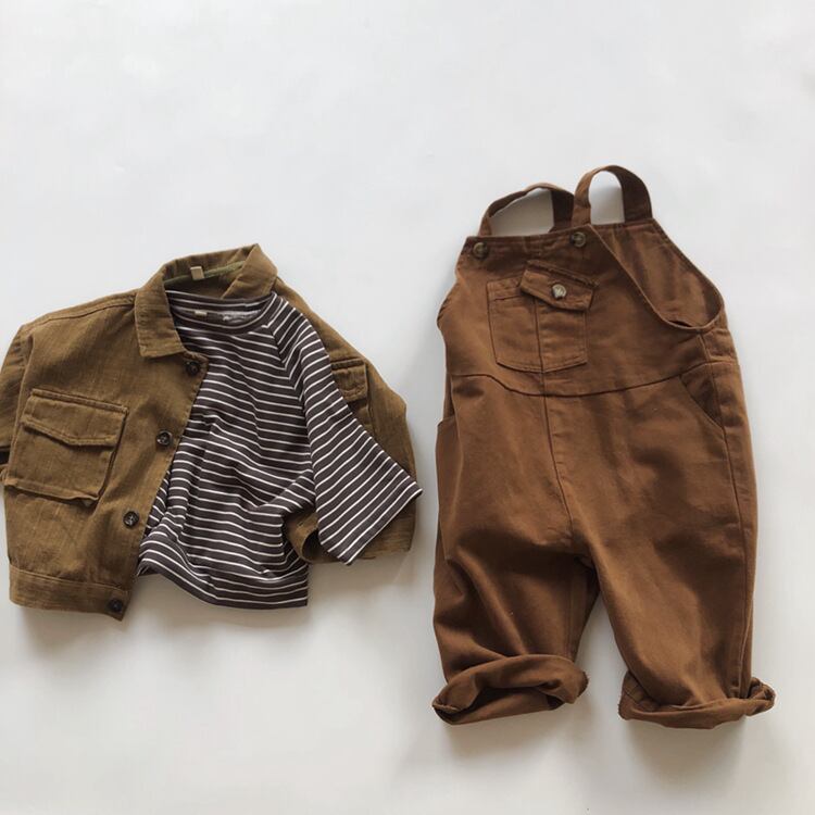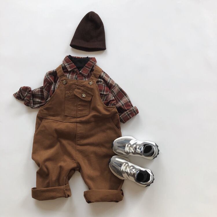 子供服 こどもふく おしゃれ お揃い オソロ リンク リンクコーデ 姉妹 姉妹コーデ かわいい プチプラ 女の子 男の子 ブラウン サロペット オーバーオール パンツ ズボン 茶色