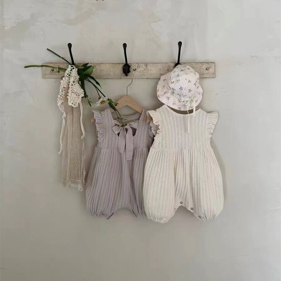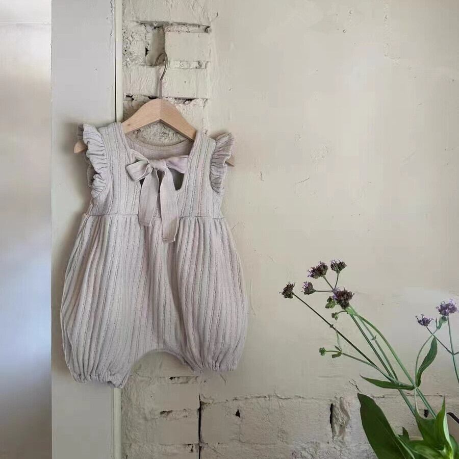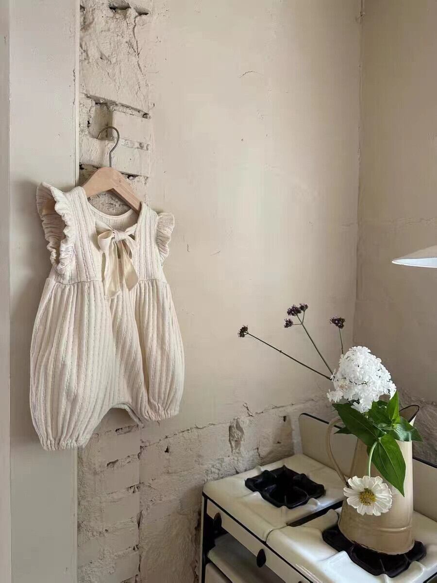 ベビー服 子供服 おしゃれ かわいい プチプラ 女の子 おでかけ アイボリー ベージュ ホワイト 夏服 オールインワン ロンパース カバーオール ノースリーブ リボン ナチュラル