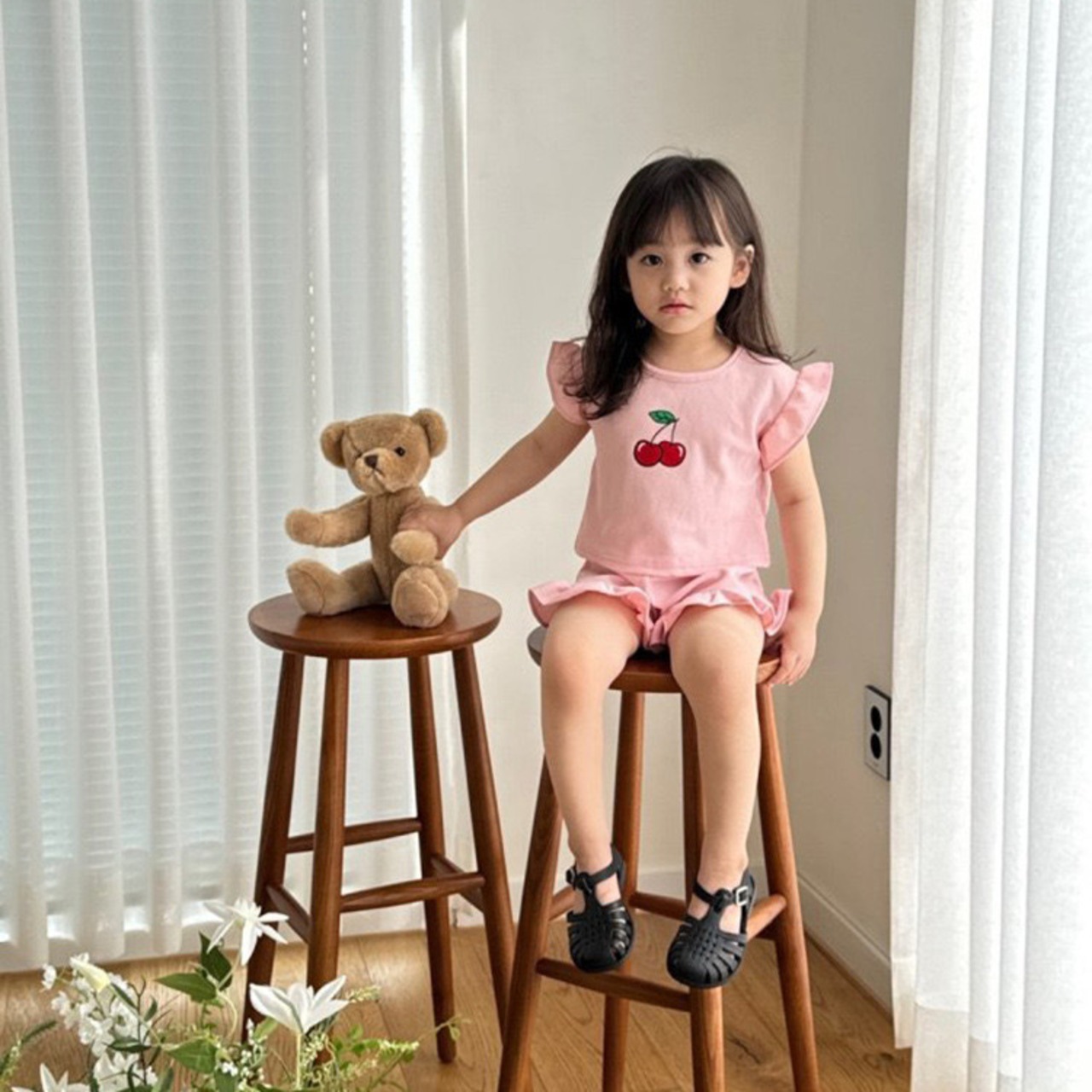 子供服 こどもふく おしゃれ お揃い オソロ リンク リンクコーデ 姉妹 姉妹コーデ かわいい プチプラ 女の子 さくらんぼ 夏服 パジャマ ルームウェア ピンク アイボリー