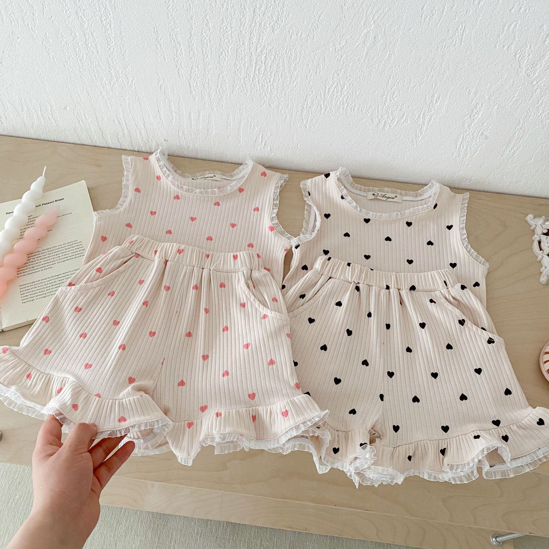 子供服 こどもふく おしゃれ お揃い オソロ リンク リンクコーデ 姉妹 姉妹コーデ かわいい プチプラ 女の子 ハート 夏服 パジャマ ルームウェア ピンク アイボリー ブラック