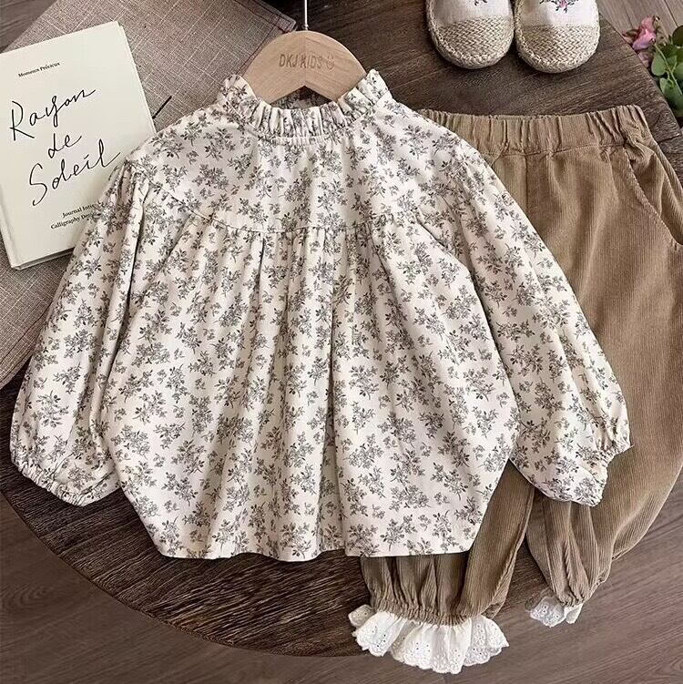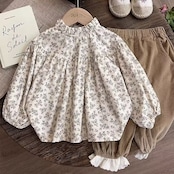 子供服 こどもふく おしゃれ かわいい プチプラ 秋服 フリル レース ブラウス トップス 長袖 花柄