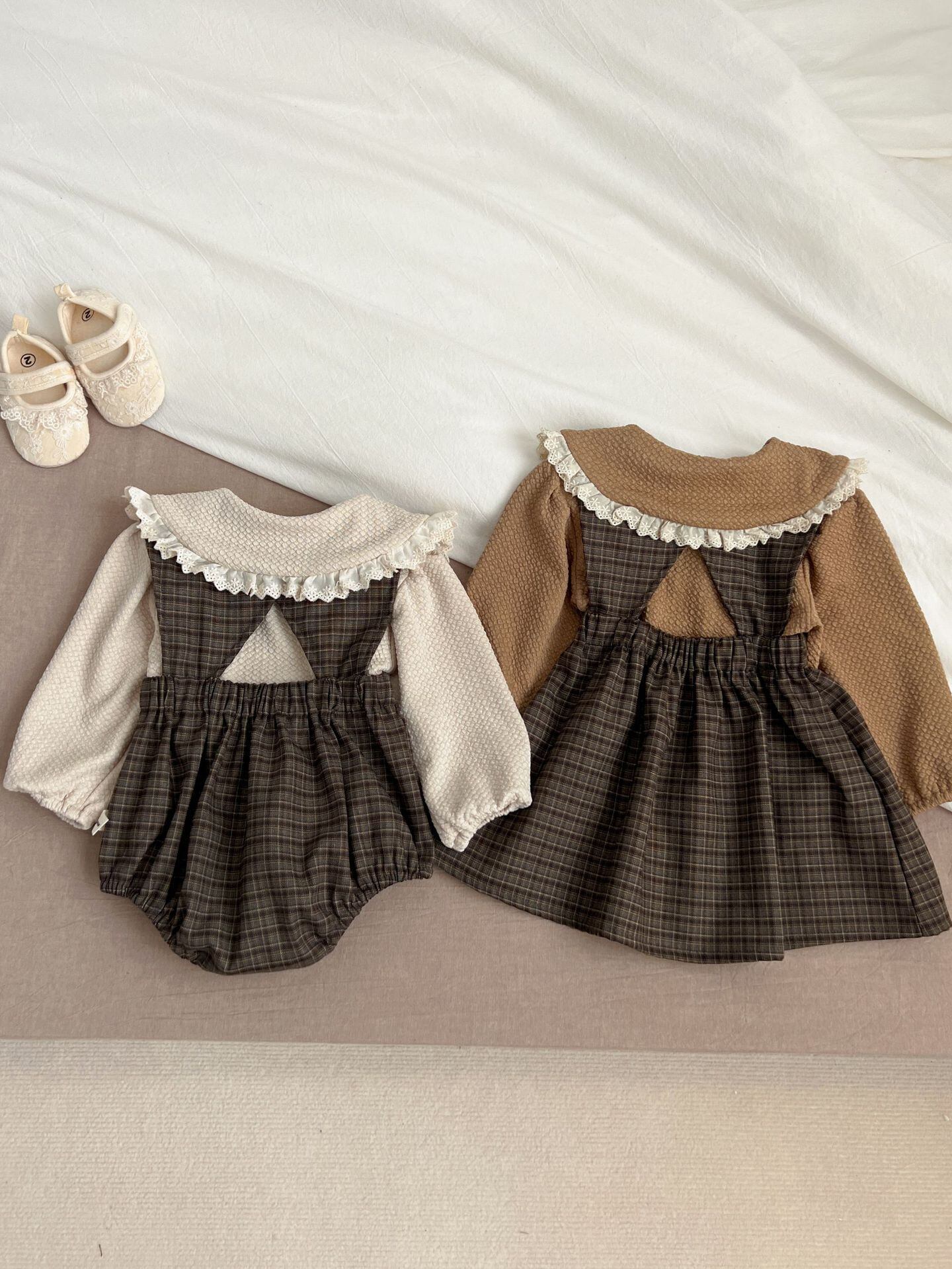 ベビー服 子供服 おしゃれ 姉妹 姉妹コーデ オソロ お揃い リンク リンクコーデ かわいい プチプラ 女の子 サロペ サロペット チェック ロンパース ワンピース