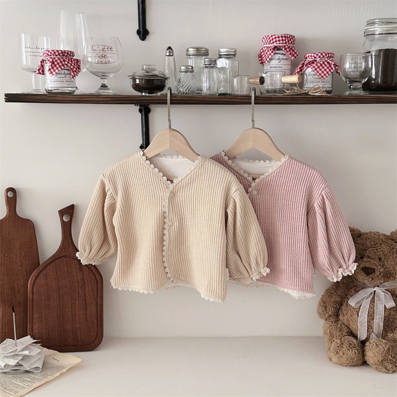 ベビー服 子供服 おしゃれ 姉妹 姉妹コーデ オソロ お揃い リンク リンクコーデ かわいい プチプラ 女の子 トップス カーディガン ピンク ベージュ