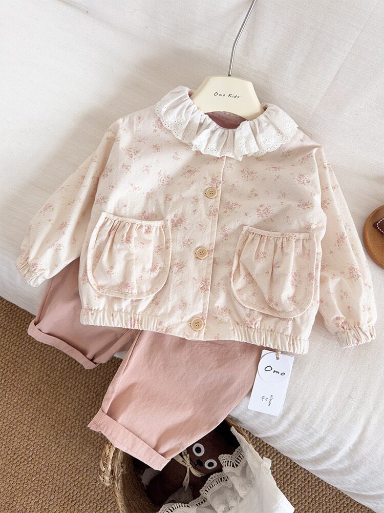 子供服 こどもふく おしゃれ お揃い オソロ リンク リンクコーデ 姉妹 姉妹コーデ かわいい プチプラ 女の子 アイボリー ホワイト 韓国子供服 韓国服 ピンク レース ブルー フリル ロゴ 花柄 ジャケット