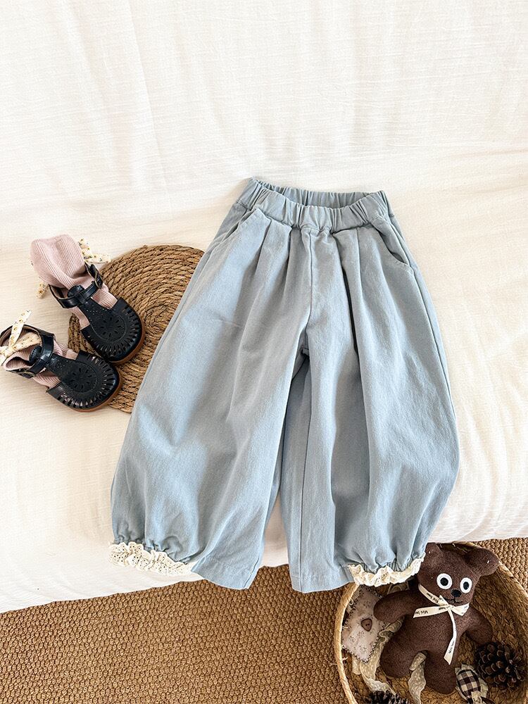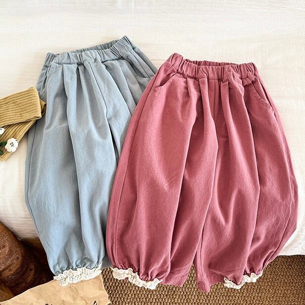 子供服 こどもふく おしゃれ お揃い オソロ リンク リンクコーデ 姉妹 姉妹コーデ かわいい プチプラ 女の子 アイボリー ホワイト 韓国子供服 韓国服 ピンク レース リボン ブルー ジョガーパンツ