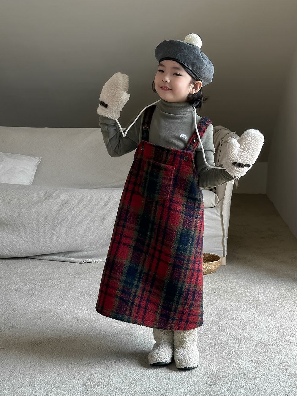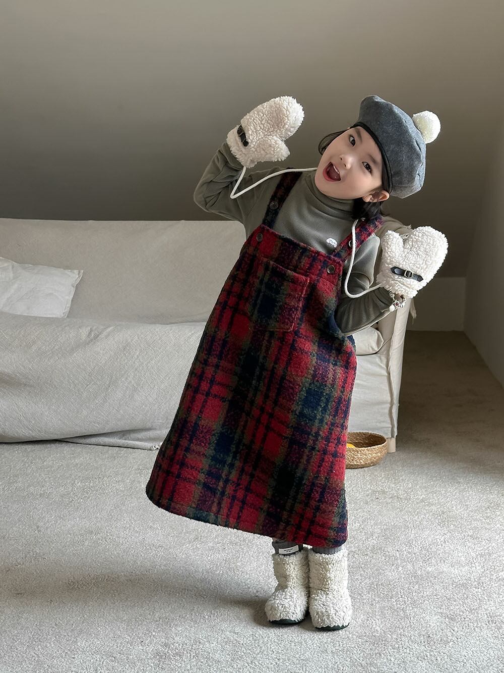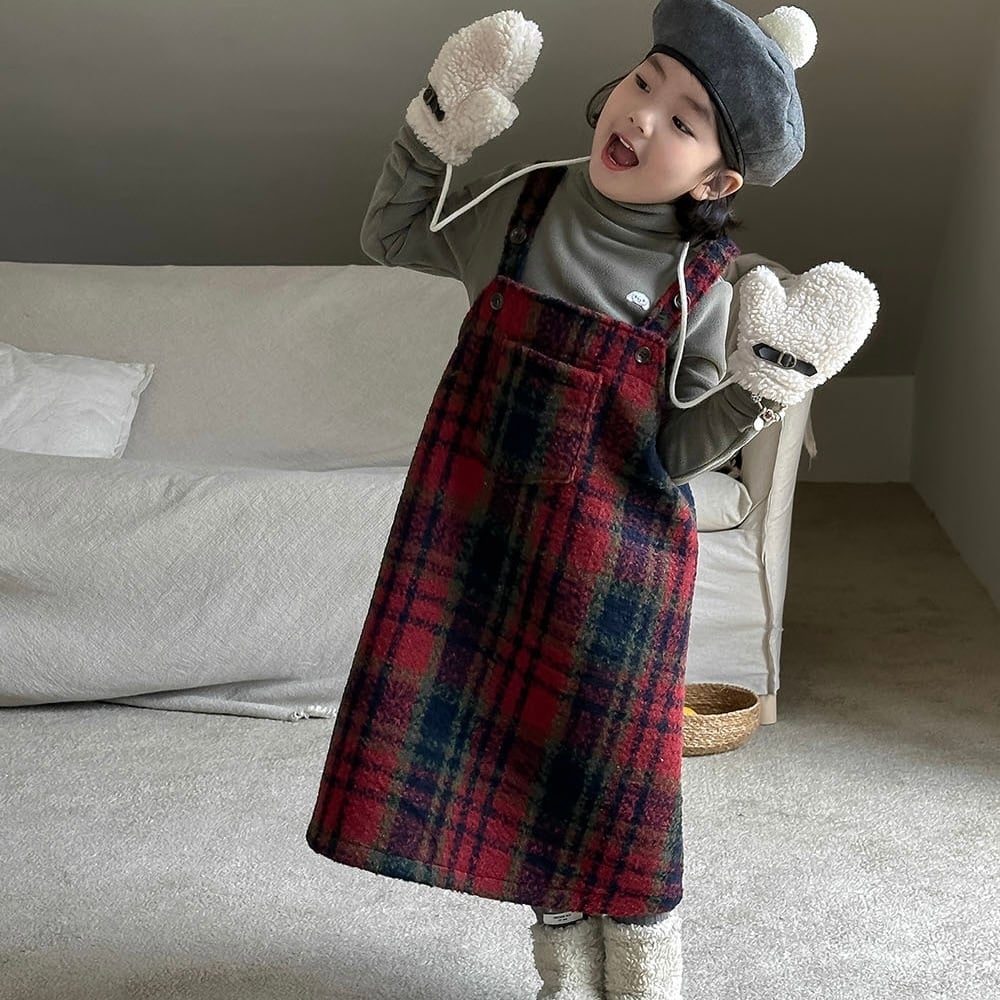 子供服 こどもふく おしゃれ お揃い オソロ リンク リンクコーデ 姉妹 姉妹コーデ かわいい プチプラ 女の子 アイボリー ホワイト 韓国子供服 韓国服 チェック 赤 レッド クリスマス 冬服 冬