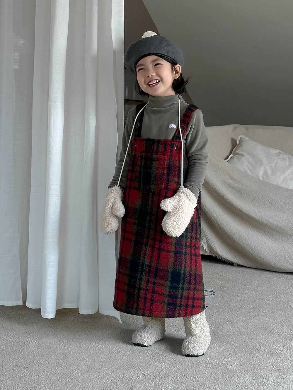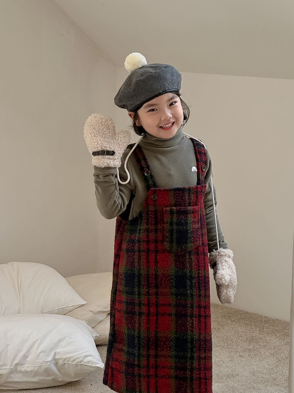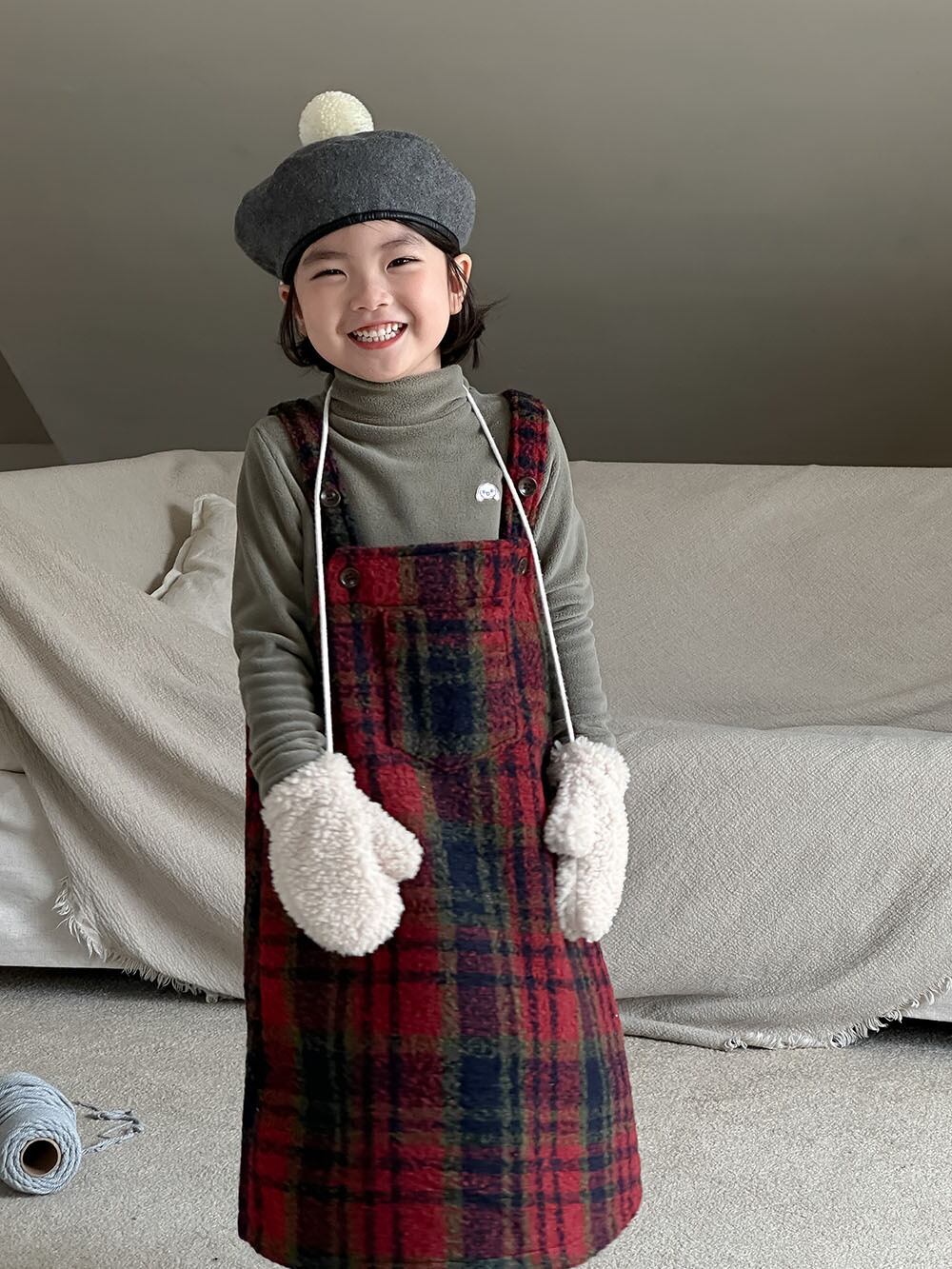 子供服 こどもふく おしゃれ お揃い オソロ リンク リンクコーデ 姉妹 姉妹コーデ かわいい プチプラ 女の子 アイボリー ホワイト 韓国子供服 韓国服 チェック 赤 レッド クリスマス 冬服 冬