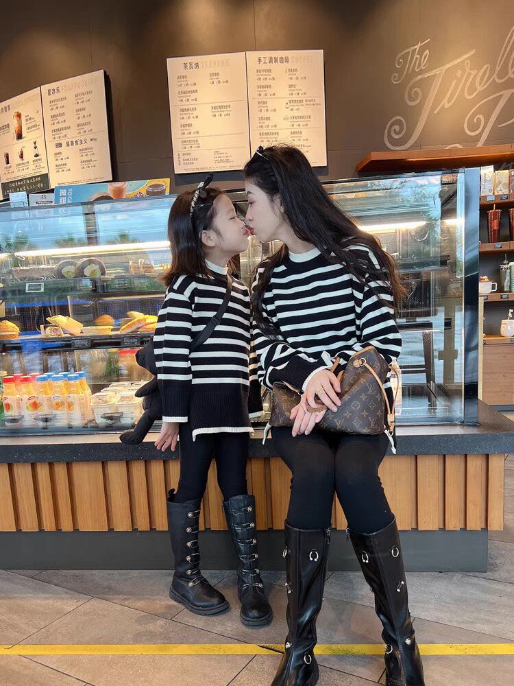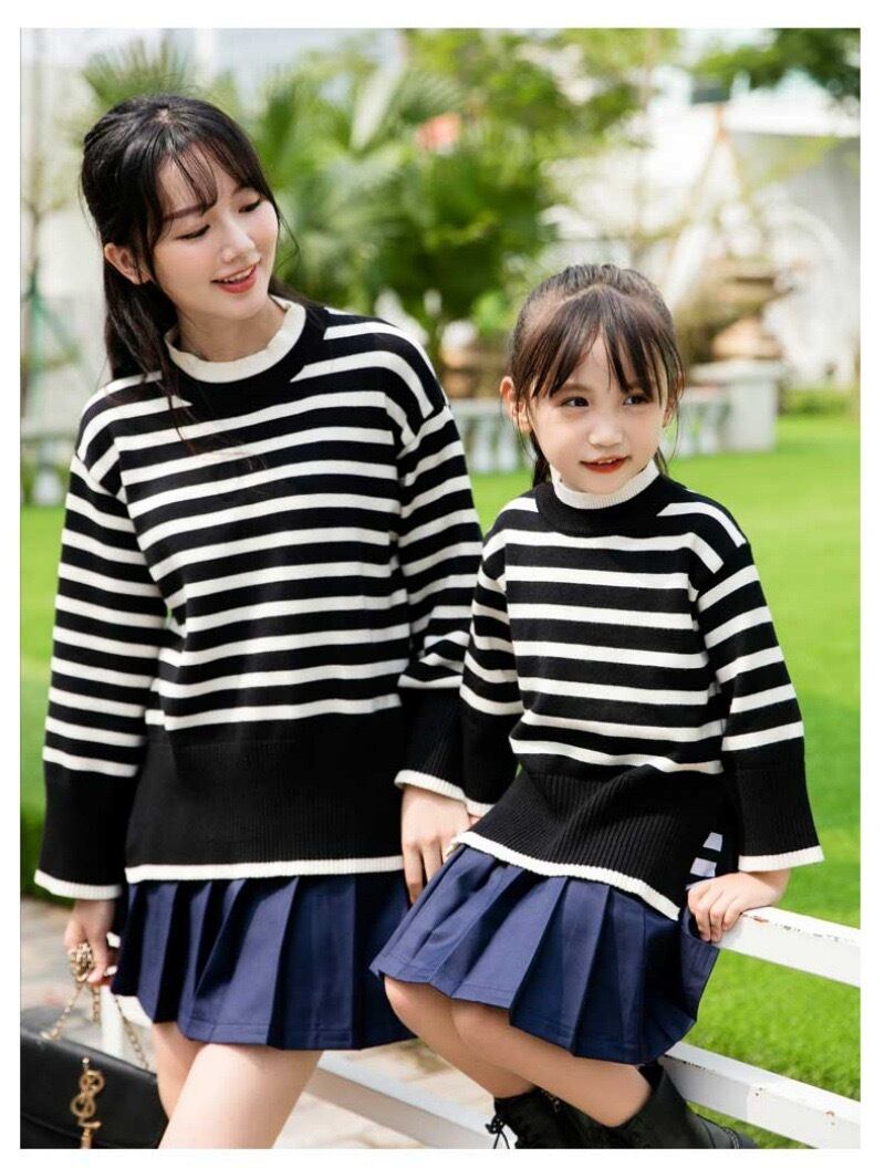 子供服 こどもふく おしゃれ お揃い オソロ リンク リンクコーデ 姉妹 姉妹コーデ かわいい プチプラ 女の子 韓国子供服 韓国服 ボーダー お揃いコーデ ライン ブラック 親子 親子コーデ 親子リンク ママ パパ