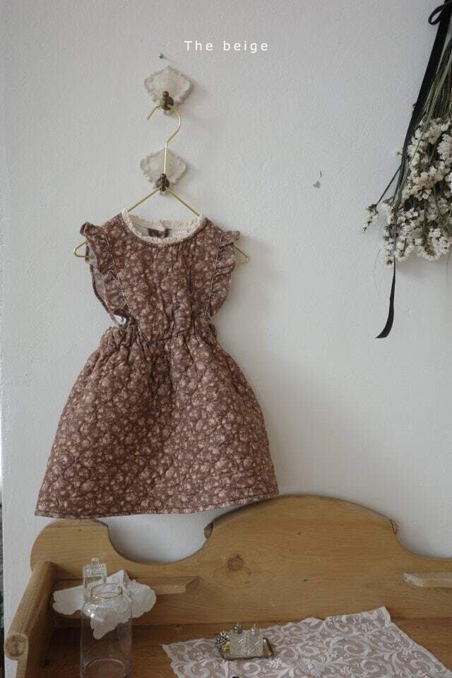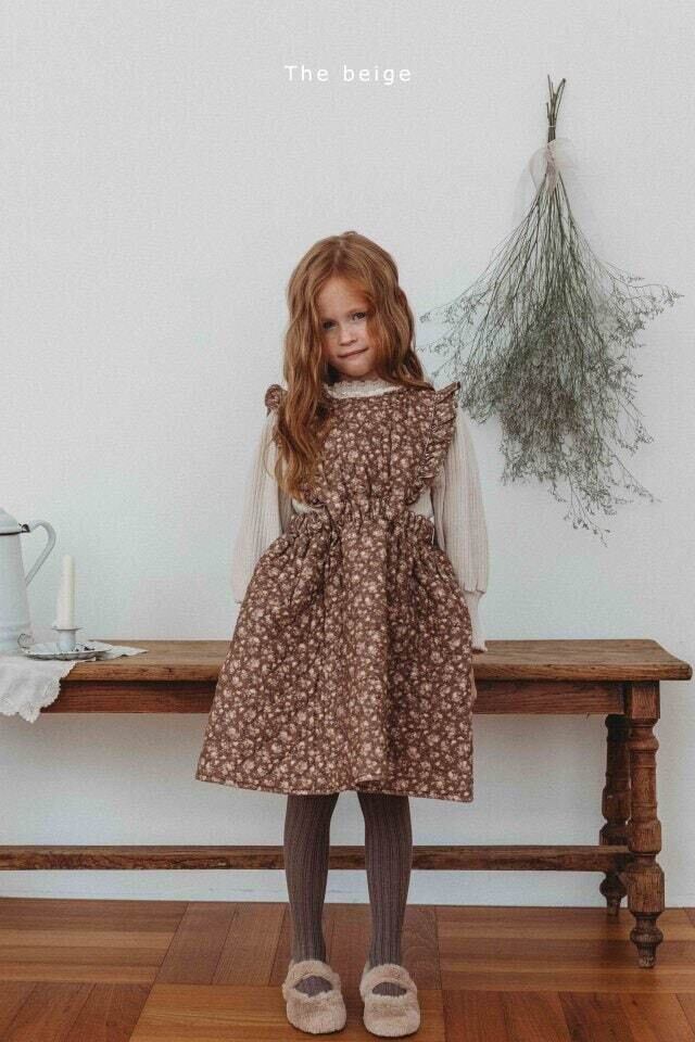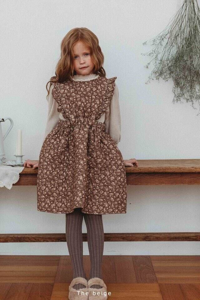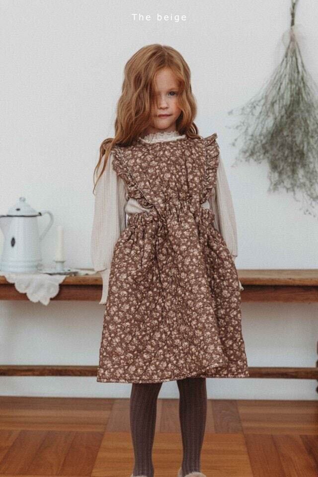 80 90 100 110 120 トップス スカート 花柄 ブラウン クリーム 花柄 ワンピース アイボリー
