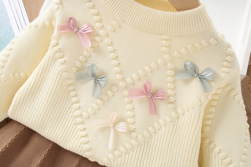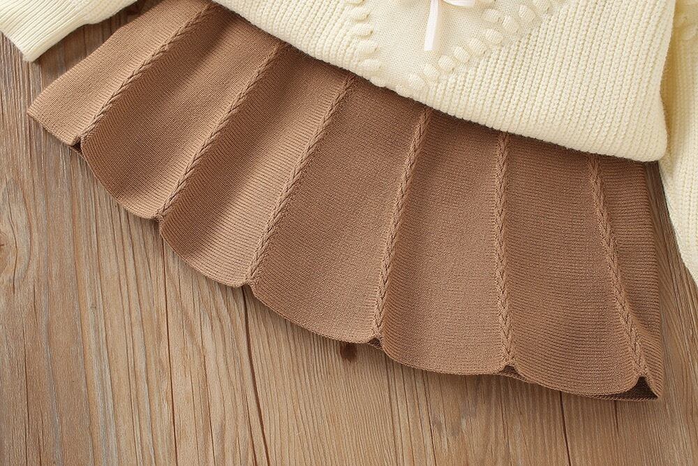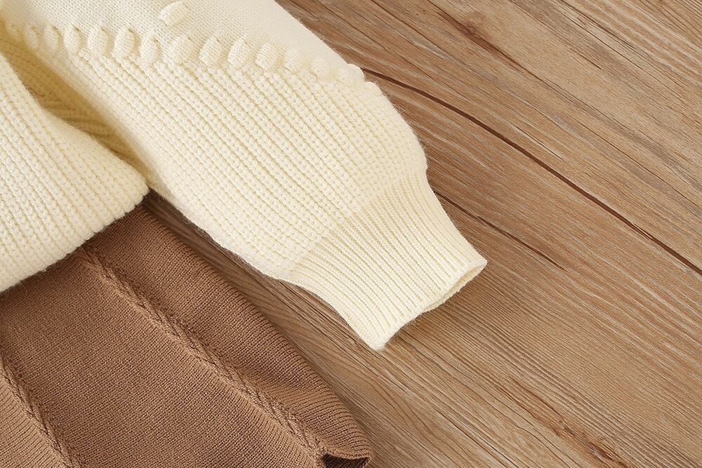 子供服 こどもふく おしゃれ かわいい プチプラ ニット ブラウン レッド アイボリー ホワイト バイカラー 秋服 冬服 ニット セットアップ スカート ニット リボン